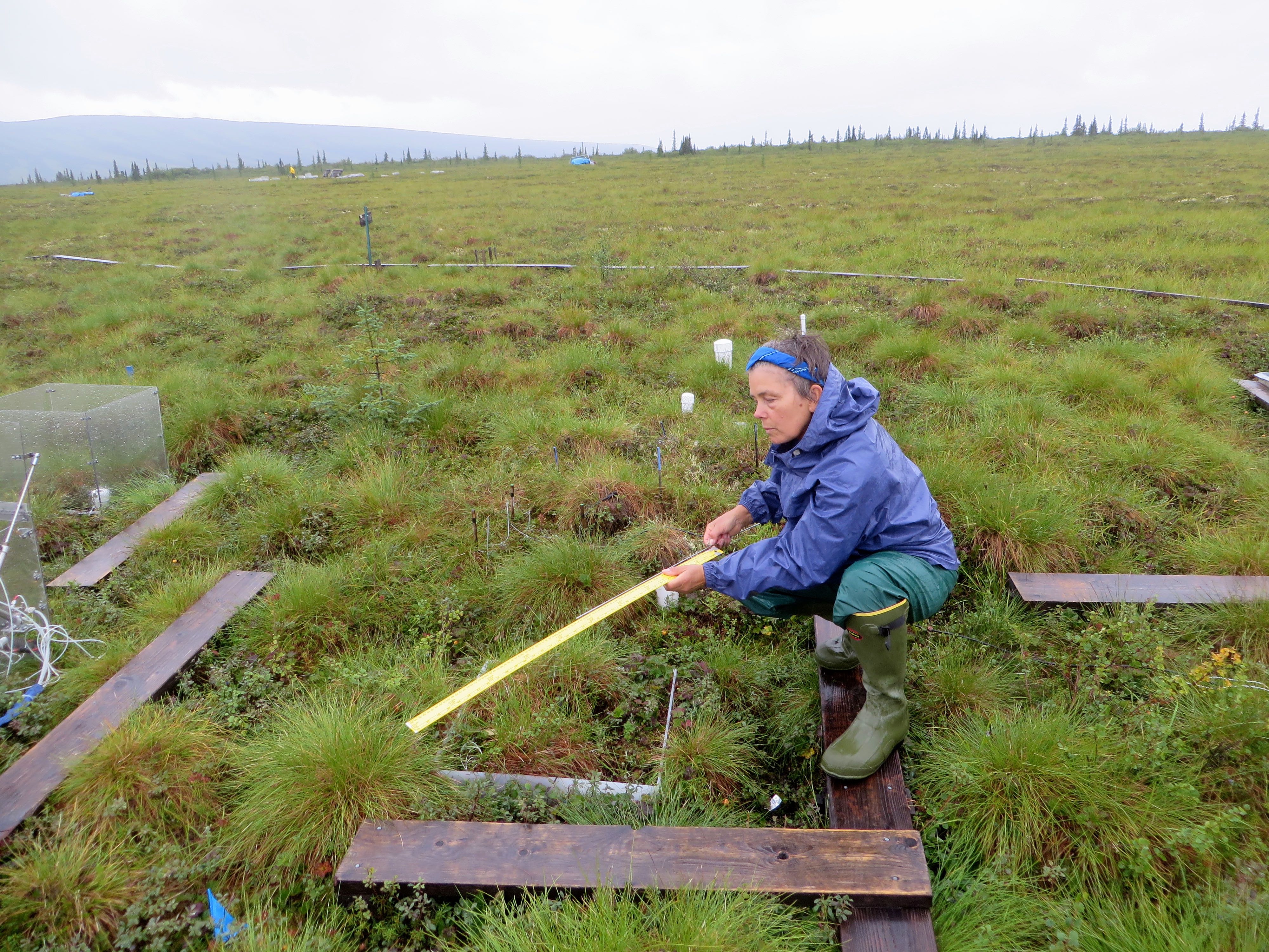 Karen Temple Beamish measures the depth to permafrost. At the CiPEHR site, near Healy, Alaska.