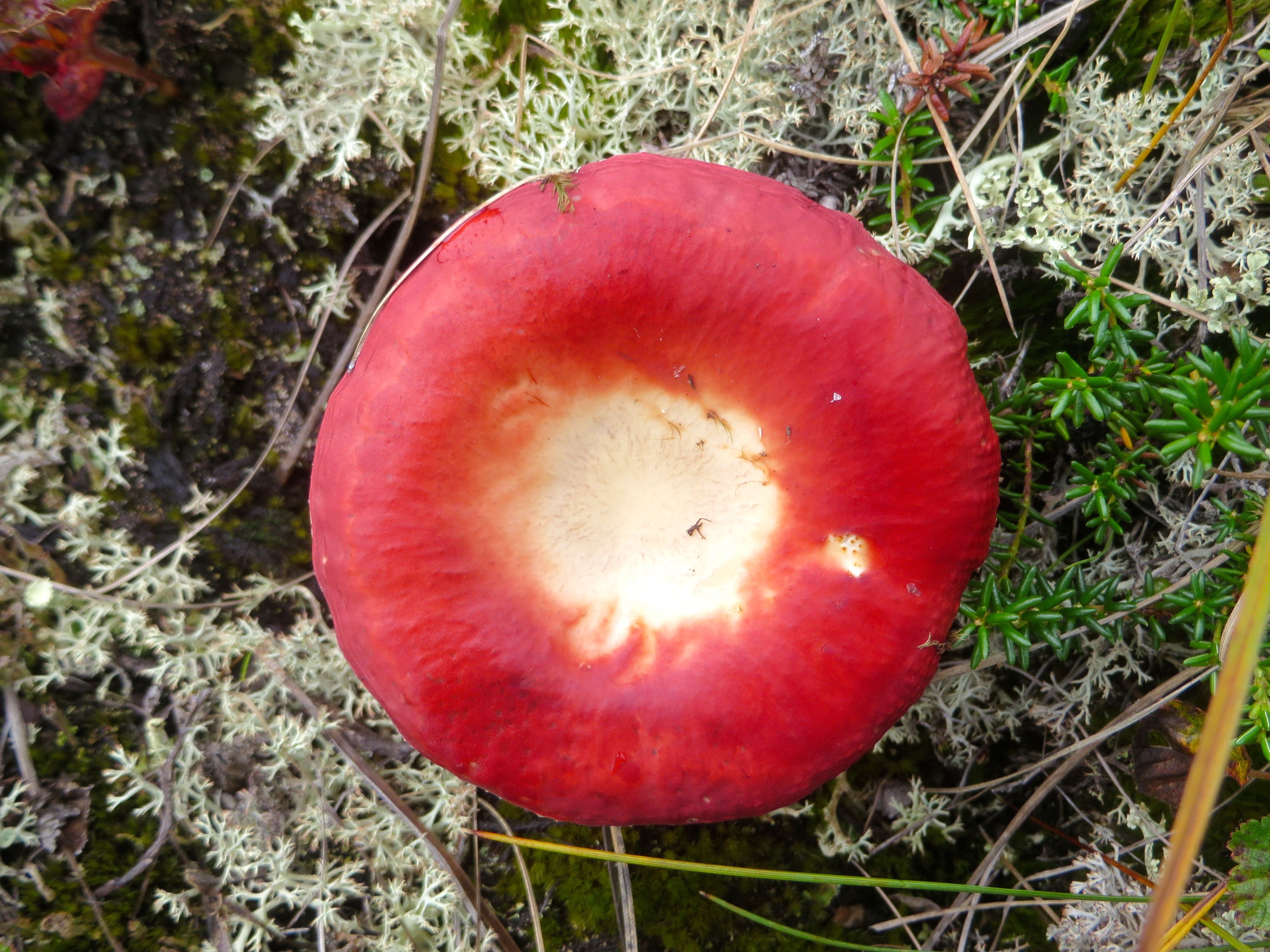 A Russula emetica mushroom growing on the tundra. At the CiPEHR site, near Healy, Alaska.