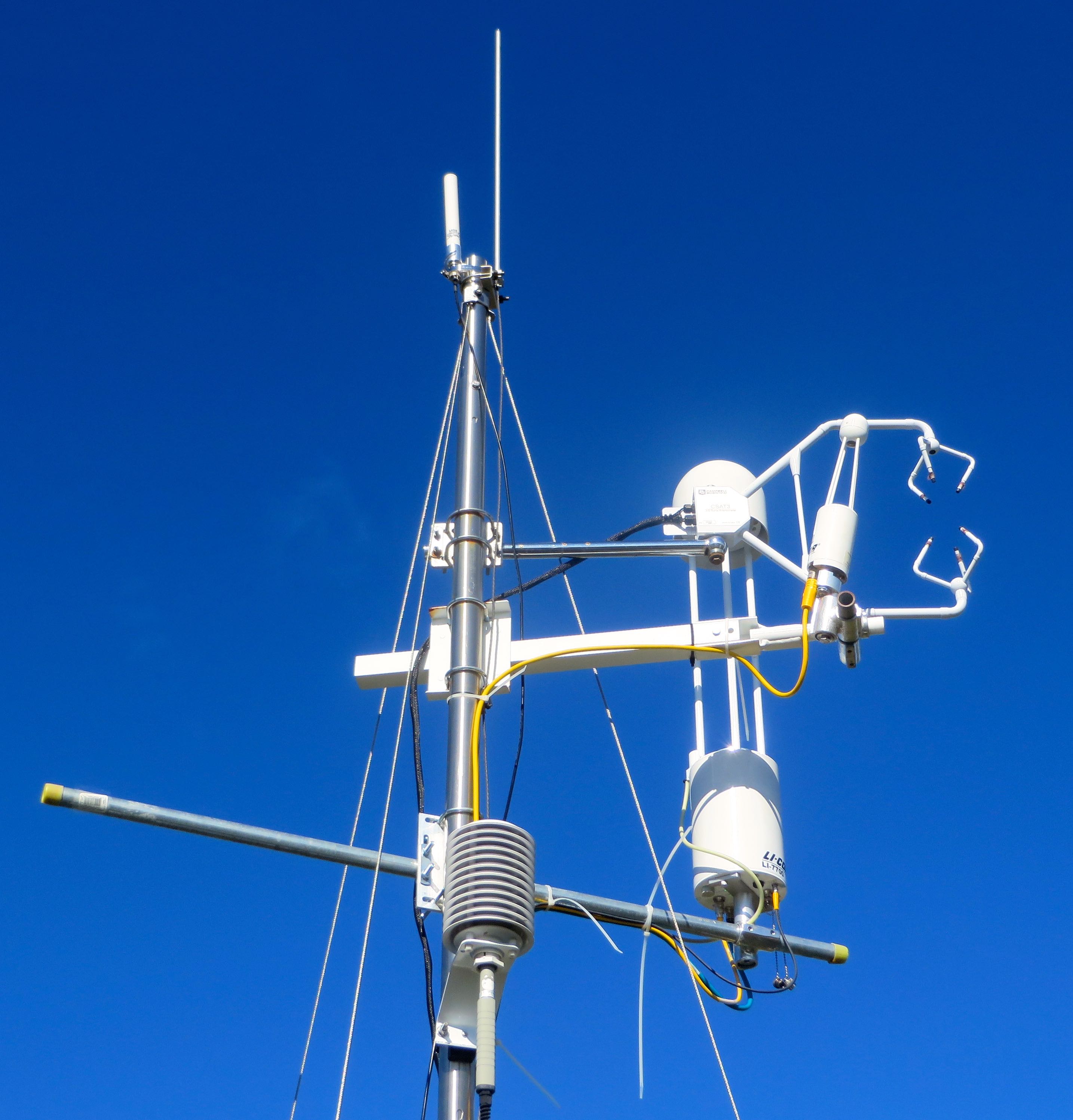 The Eddy Covariance Tower contains an infrared gas analyzer, a methane analyzer, and a sonic anemometer. At the gradient site, near Healy, Alaska.