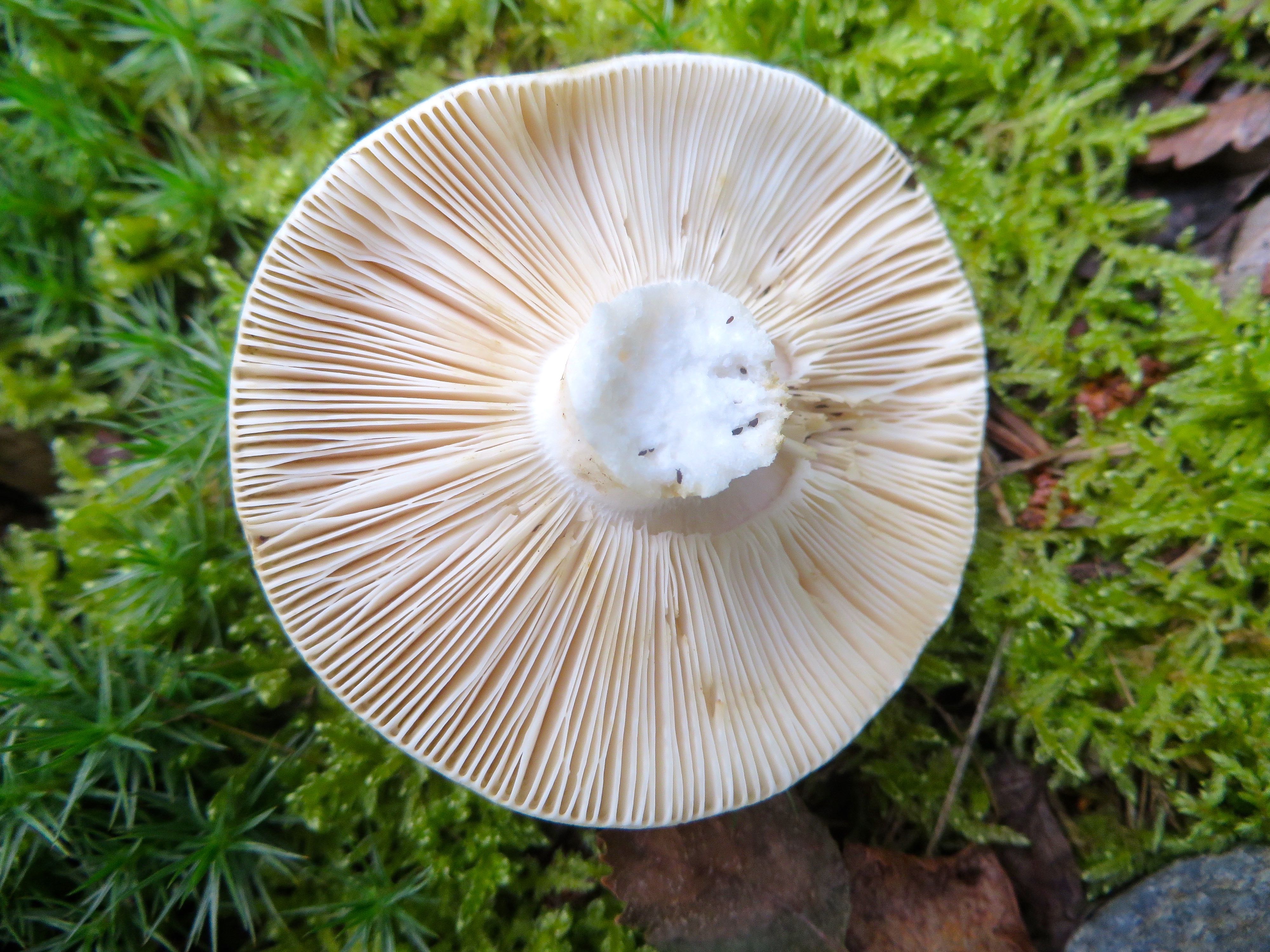 Gills located under the cap of a mushroom. At the CiPEHR site, near Healy, Alaska.