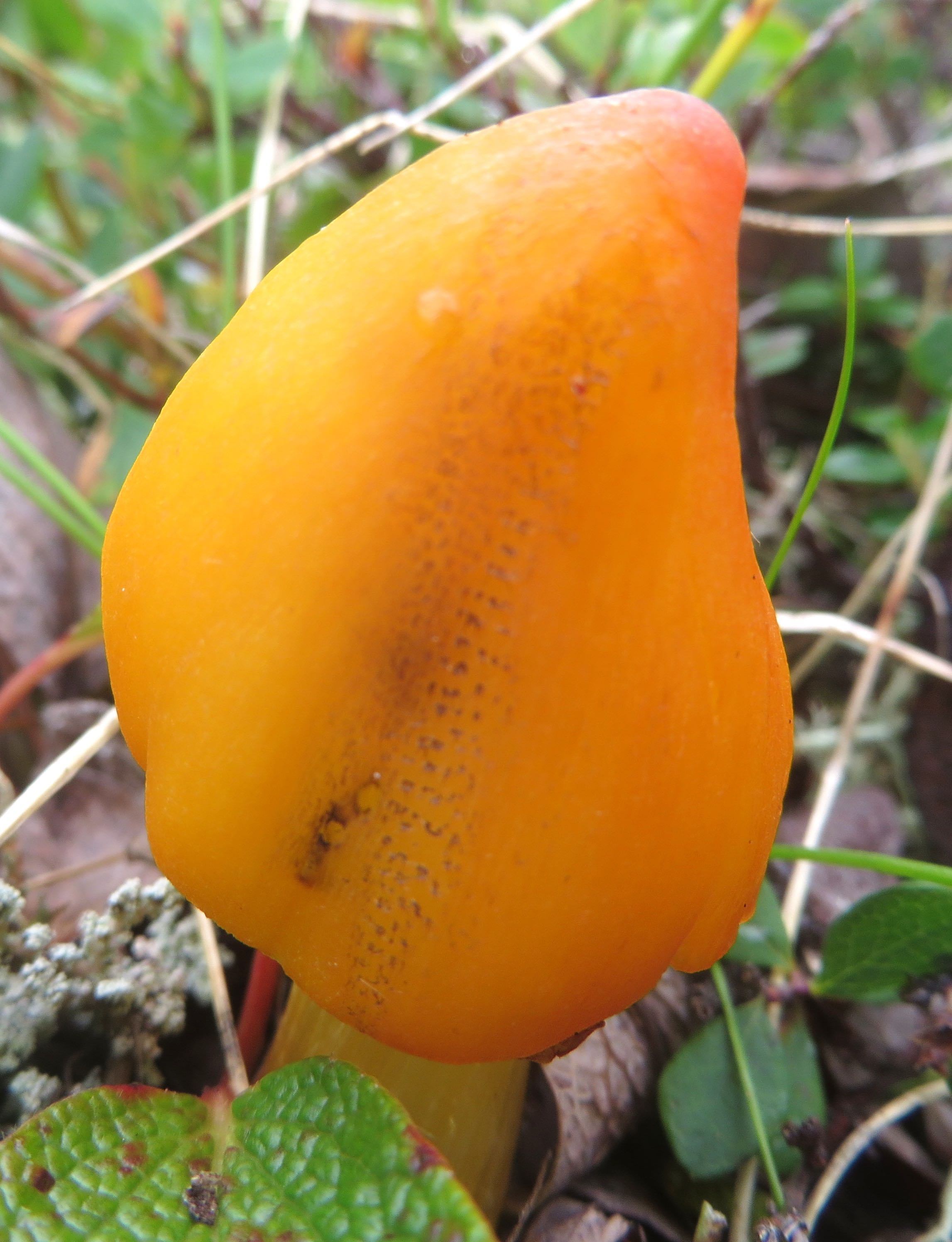 Karen Temple Beamish: "I dont know the name, but I love this yellow little hat mushroom!" At the CiPEHR site, near Healy, Alaska.