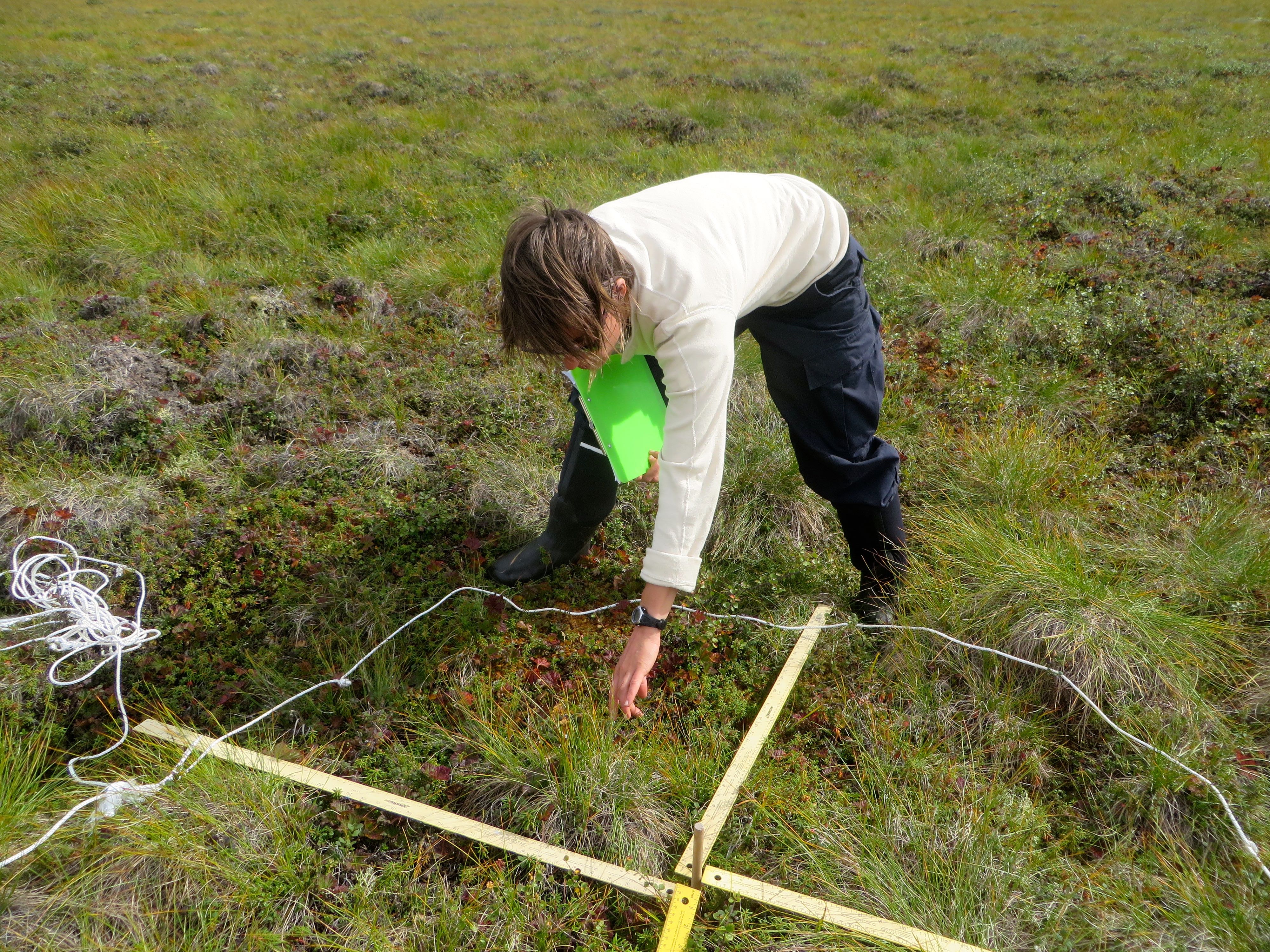 Dr. Marguerite Mauritz estimates the percentage of plant cover. At the gradient site, near Healy, Alaska.