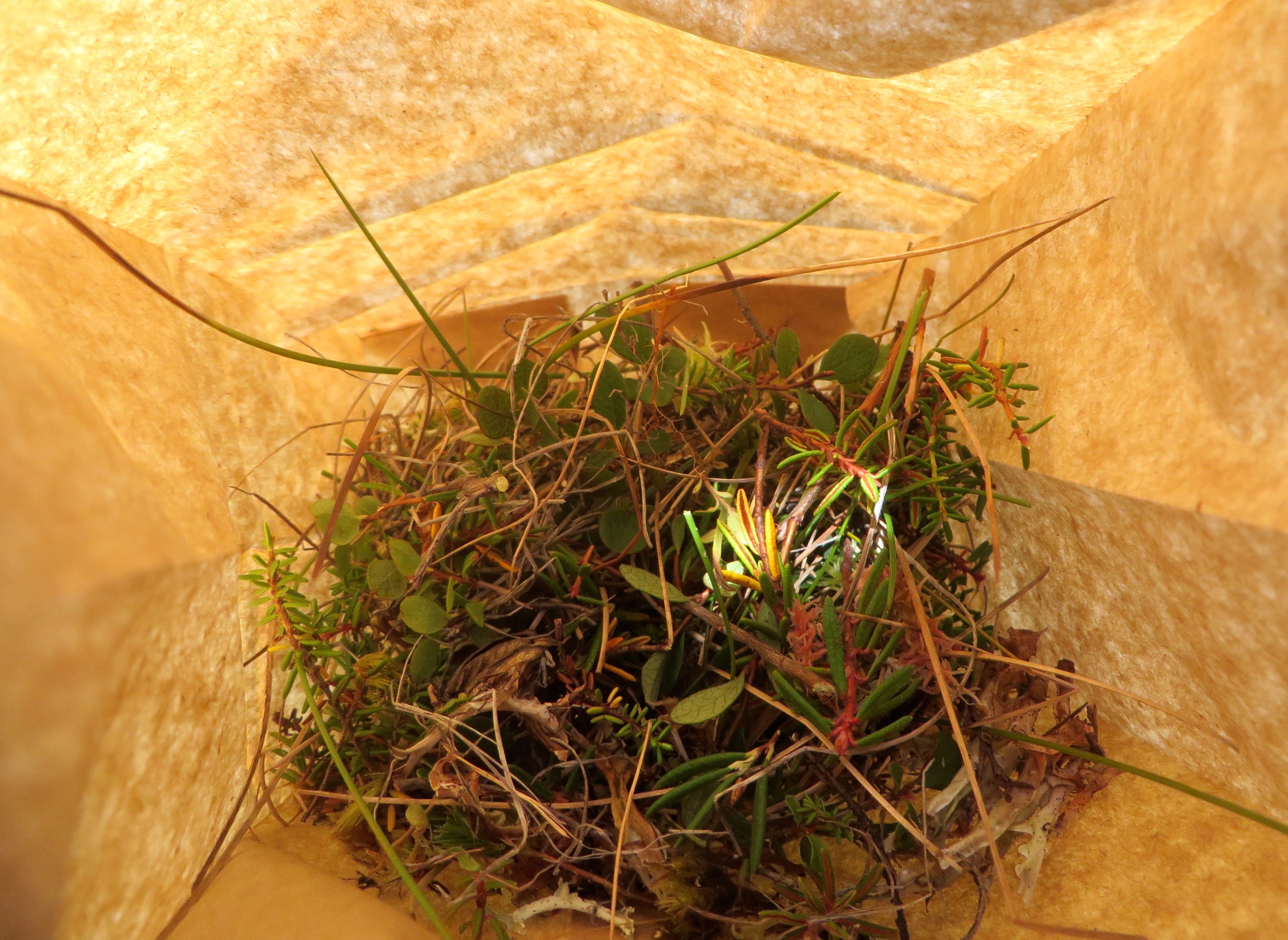 A biomass sample bagged up for drying at the lab. At the gradient site, near Healy, Alaska.