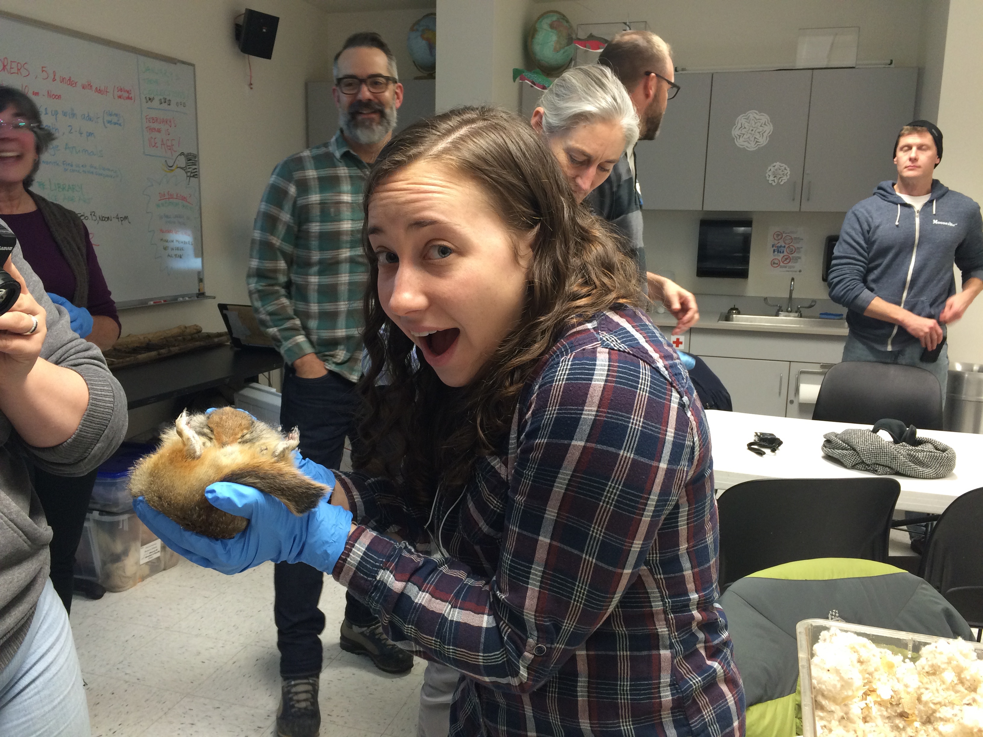 Kate Miller carefully holds a hibernating Arctic ground squirrel. University of Alaska Museum of the North, Fairbanks, Alaska.