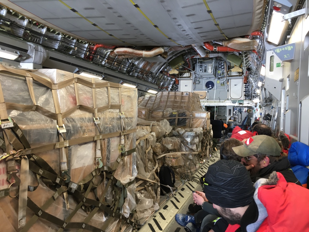 Kate Miller: "The C-17 might be bigger and faster than the C-130, but it's still not built for comfort." McMurdo Station, Antarctica.