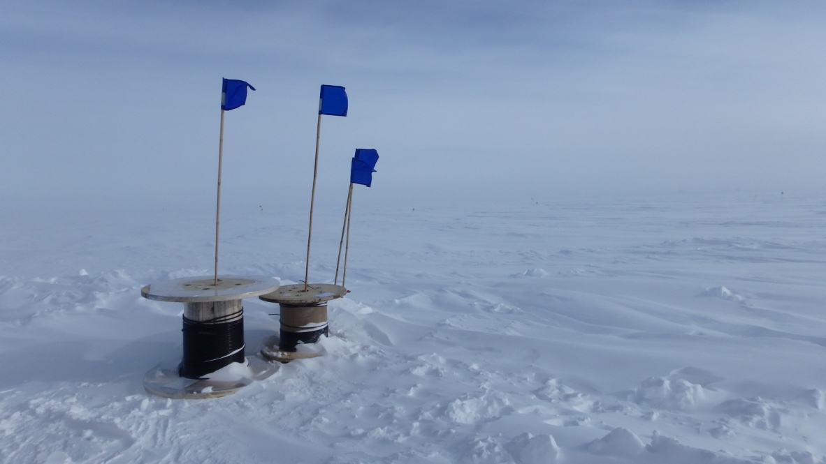 Spools of cable that need to be laid in a trench. This cable will provide power and allow data transmission to a new Askaryan Radio Array station set for deployment in the 2017-18 season. Amundsen-Scott South Pole Station, Antarctica.