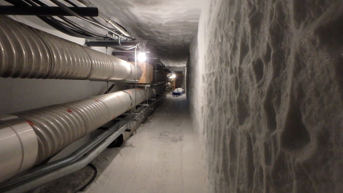 The Tunnels underneath Amundsen-Scott South Pole Station, Antarctica. The top pipe is for water and the bottom pipe is for sewage.