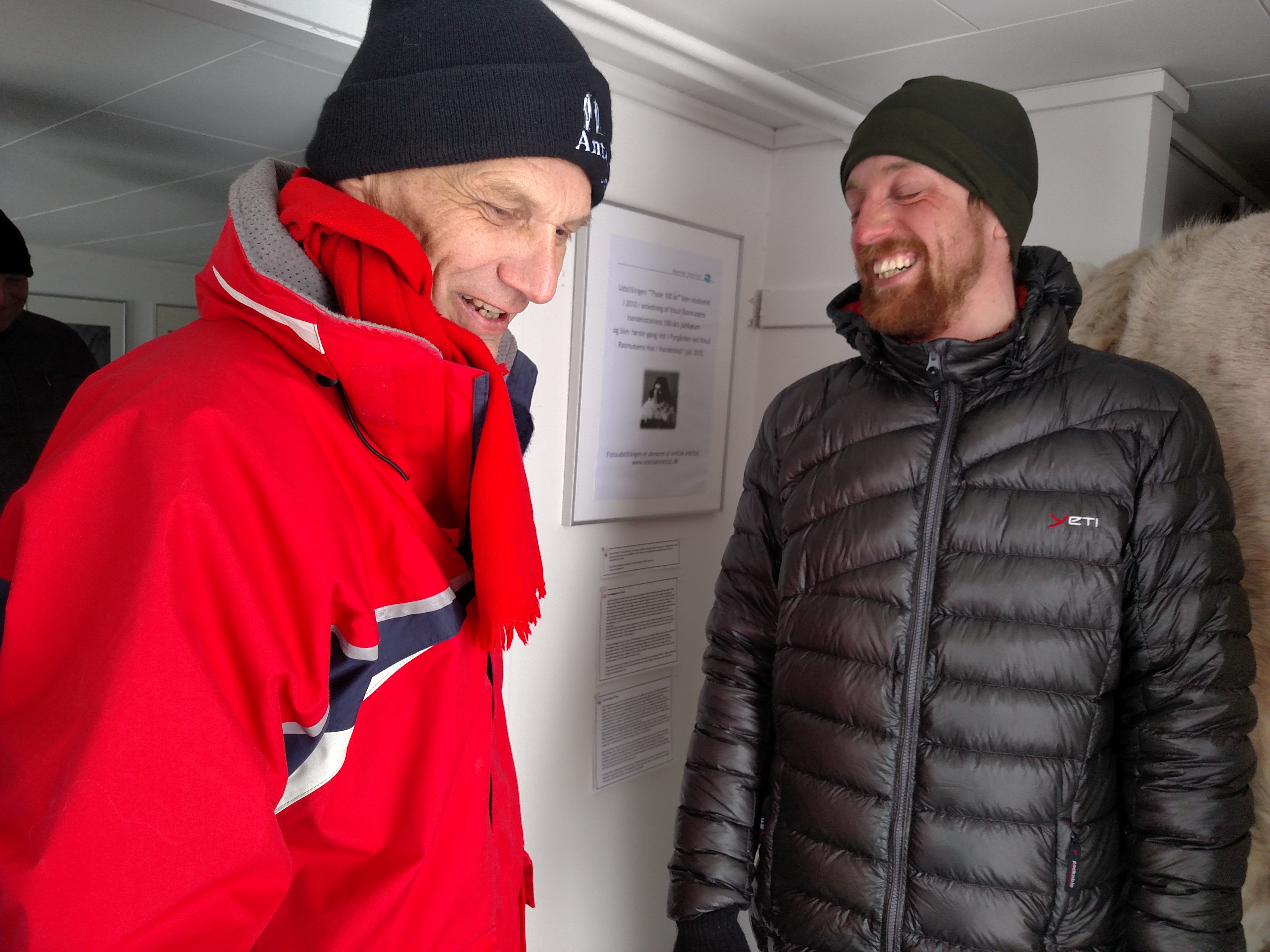 Kelly McCarthy: "The late Dr. Piers Sellers speaks with Morten, a member of the Sirius Dog Patrol who spent months on an Arctic dogsled expedition documenting the role of Sirius officers." Dundas Village, Thule, Greenland.