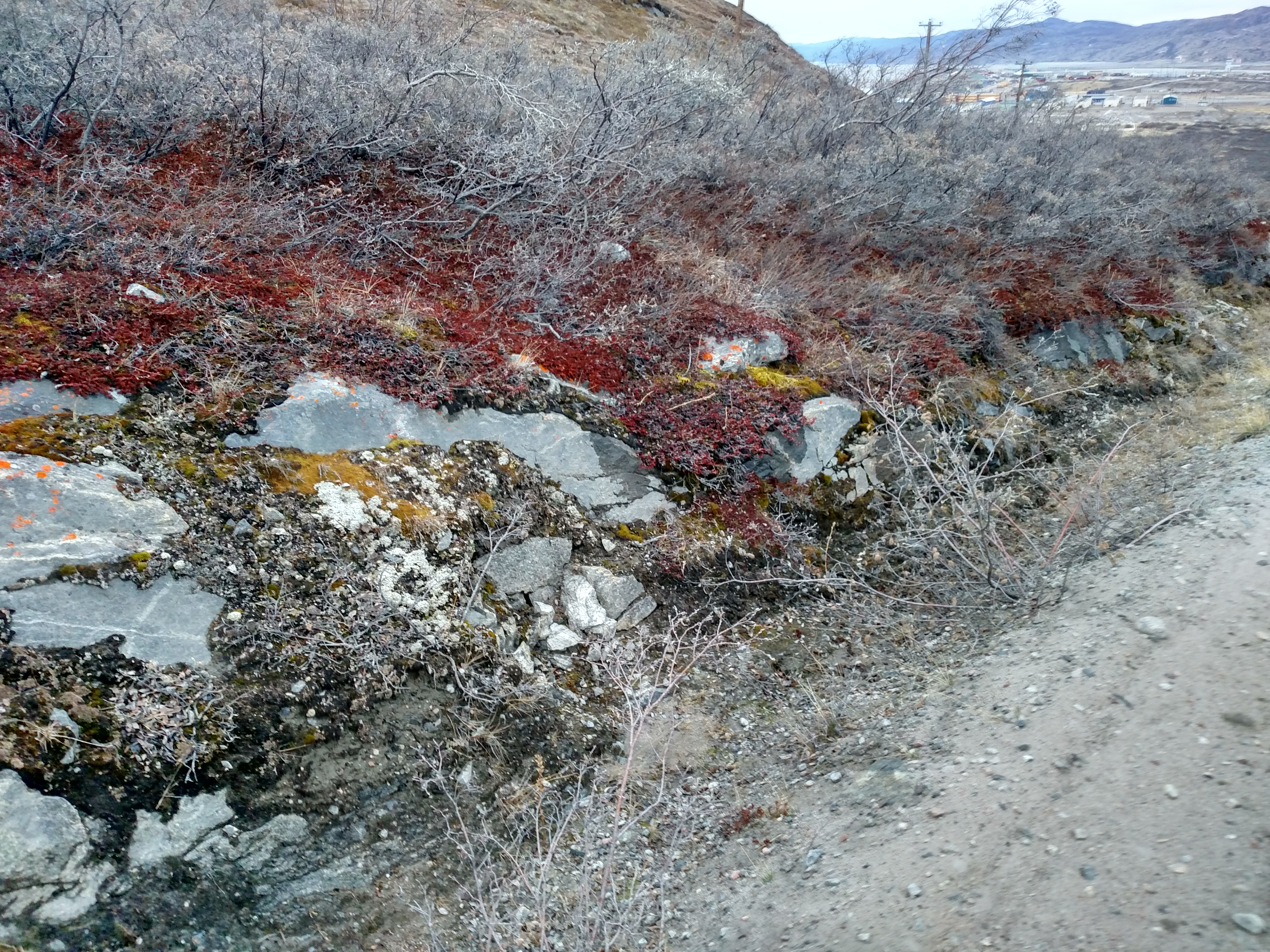As the Arctic enters its warm season, colorful low vegetation blooms on the edge of Kangerlussuaq, Greenland.