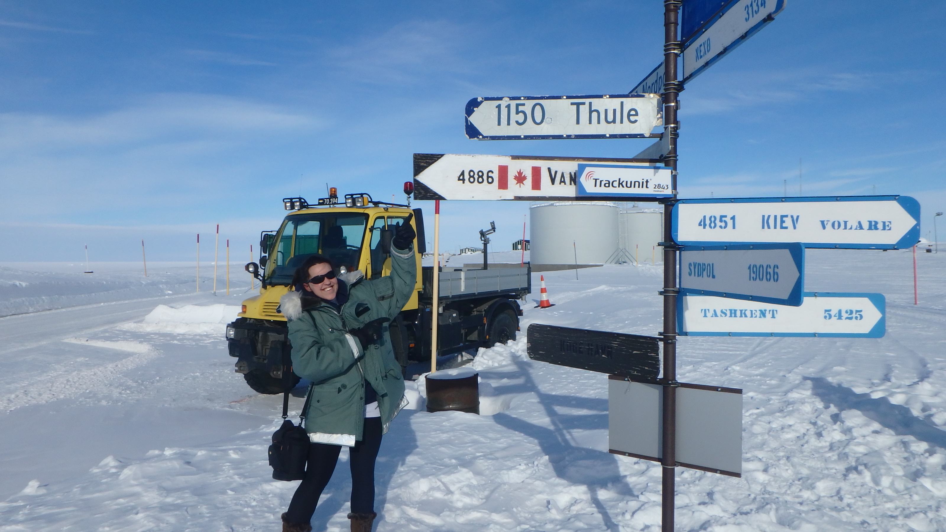 Kelly McCarthy checks out how far she and the team have travelled to reach Station Nord from Thule Air Force Base during a refuel mission. Station Nord, Greenland.
