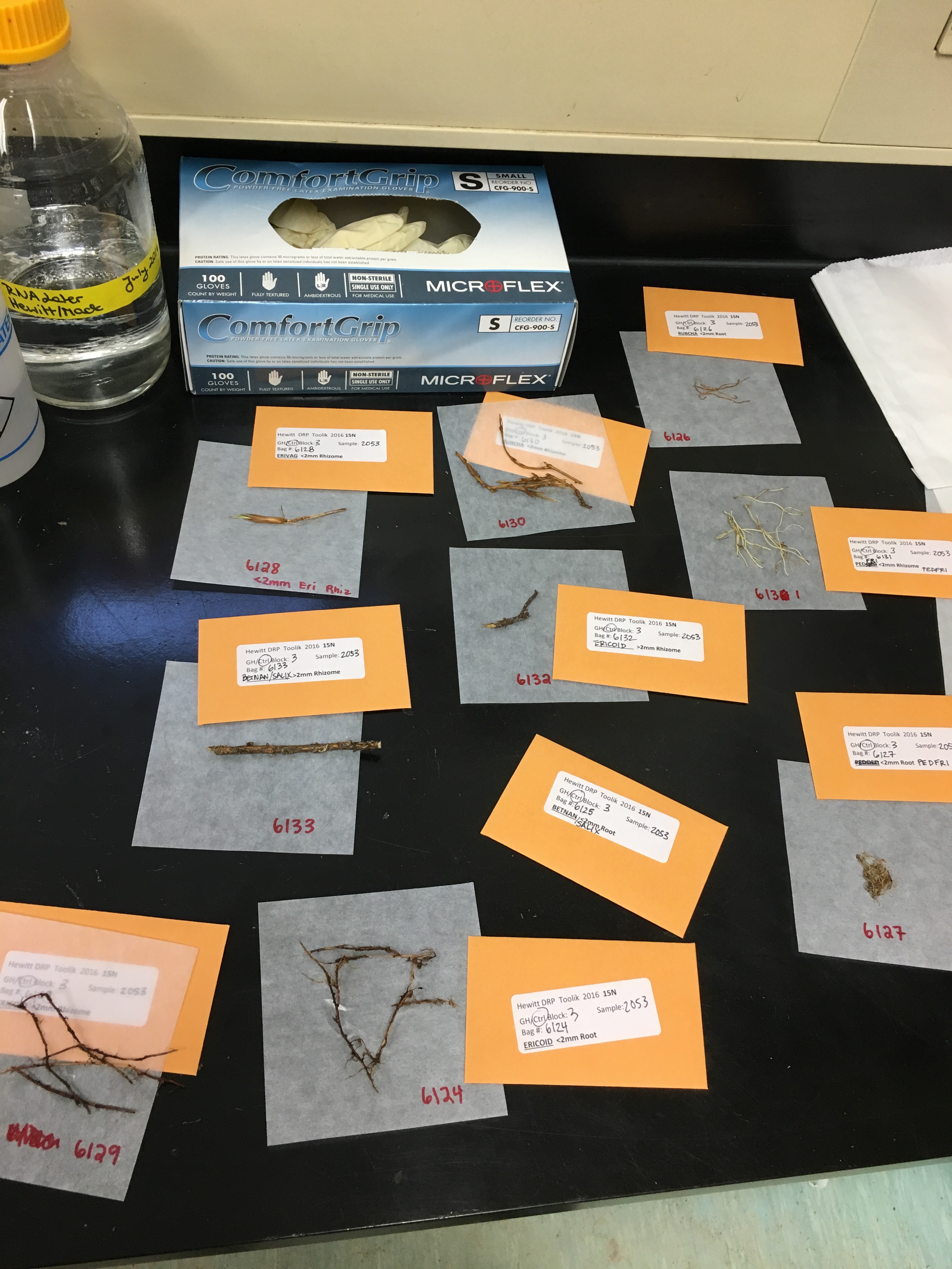 A group of root samples labeled and numbered. Toolik Field Station, Alaska.