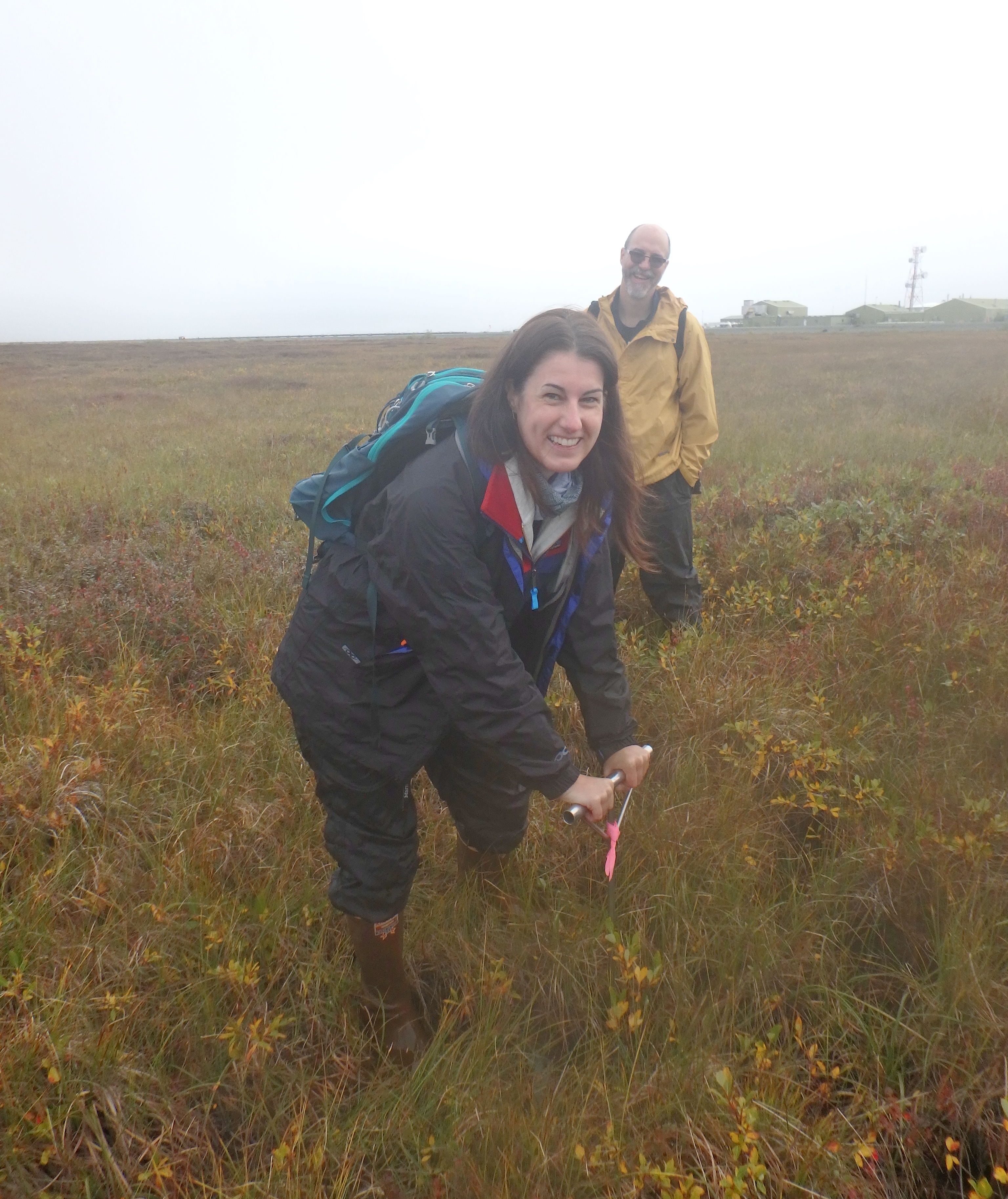 Nell Kemp uses a frost probe to take a thaw depth of the tundra. North Slope, Alaska.