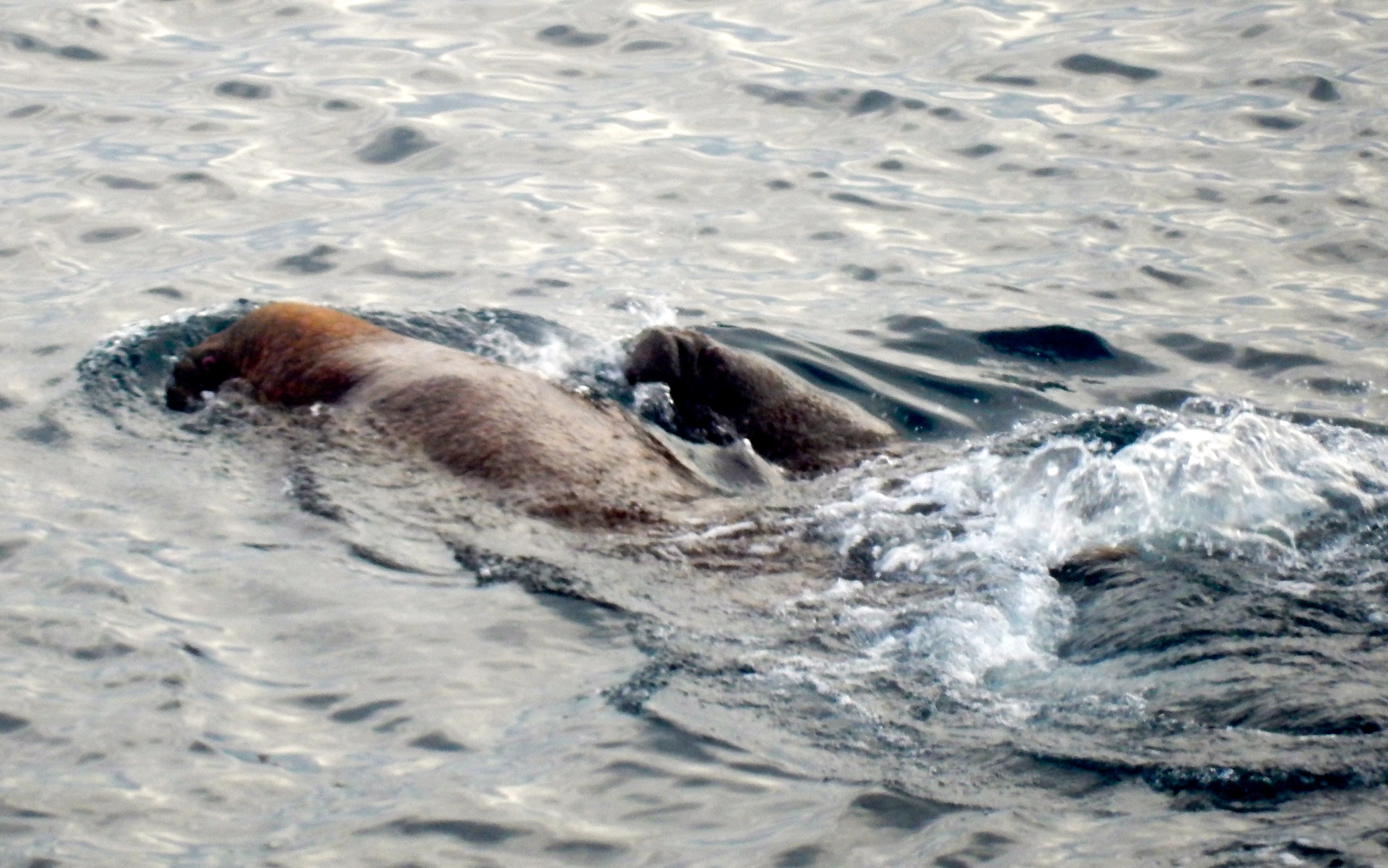 A walrus and pup, as seen from aboard the USCGC Healy icebreaker in the Bering Sea.
