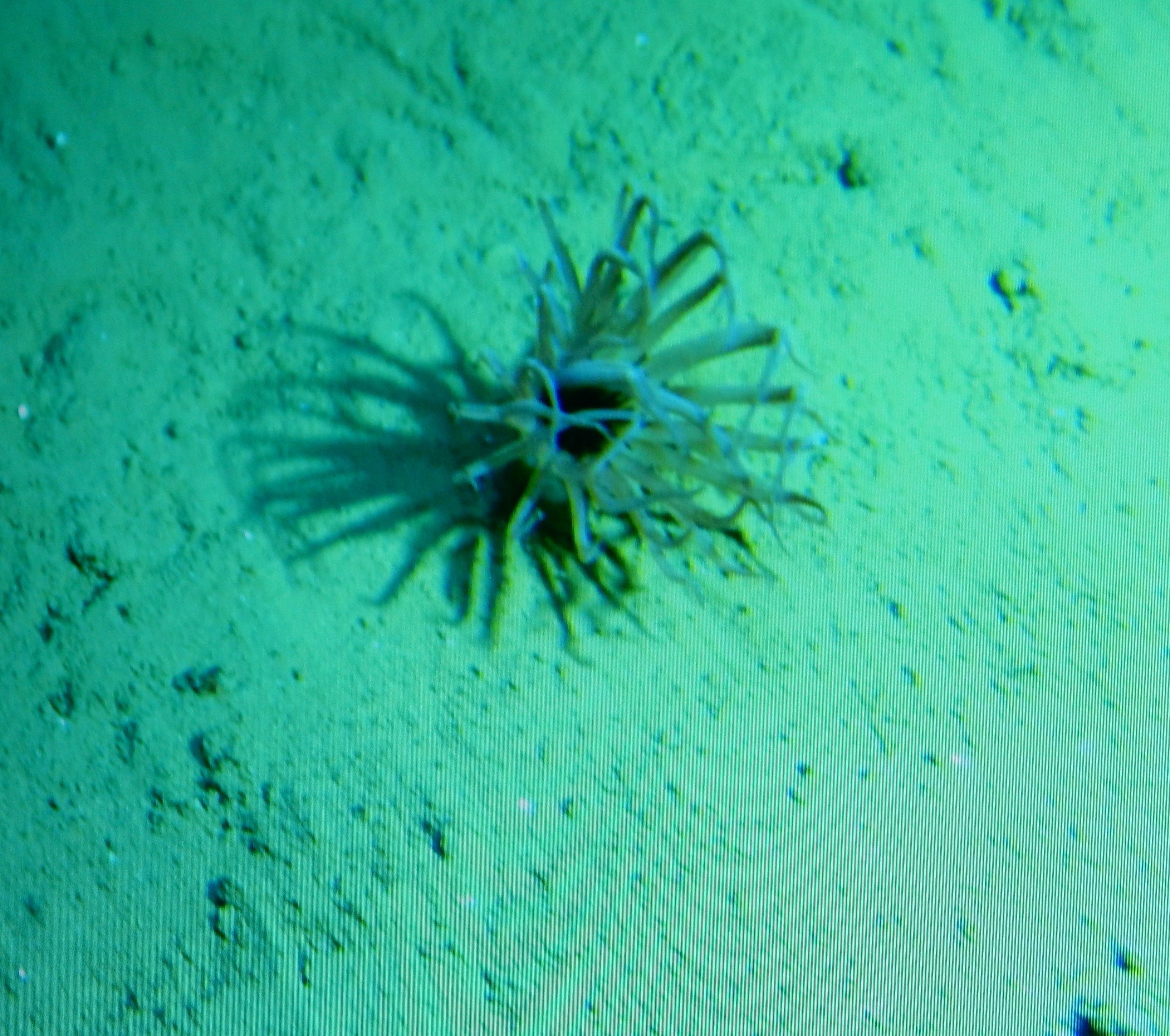 An anemone seen via the remotely operated vehicle (ROV). Aboard the USCGC Healy icebreaker in the northern Chukchi Sea.