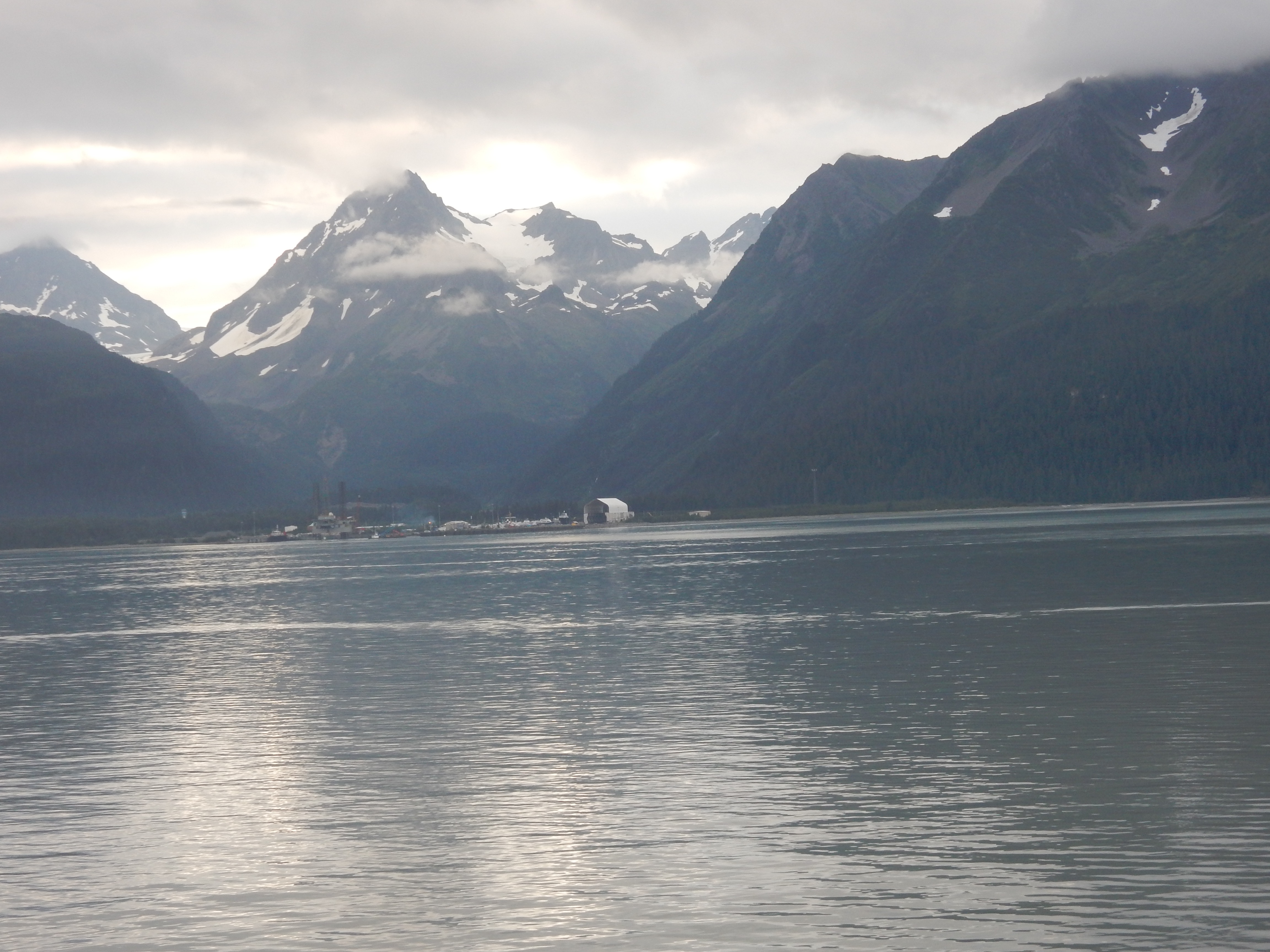 Chugach mountains as USCGC Healy enters the harbor at Seward, AK.