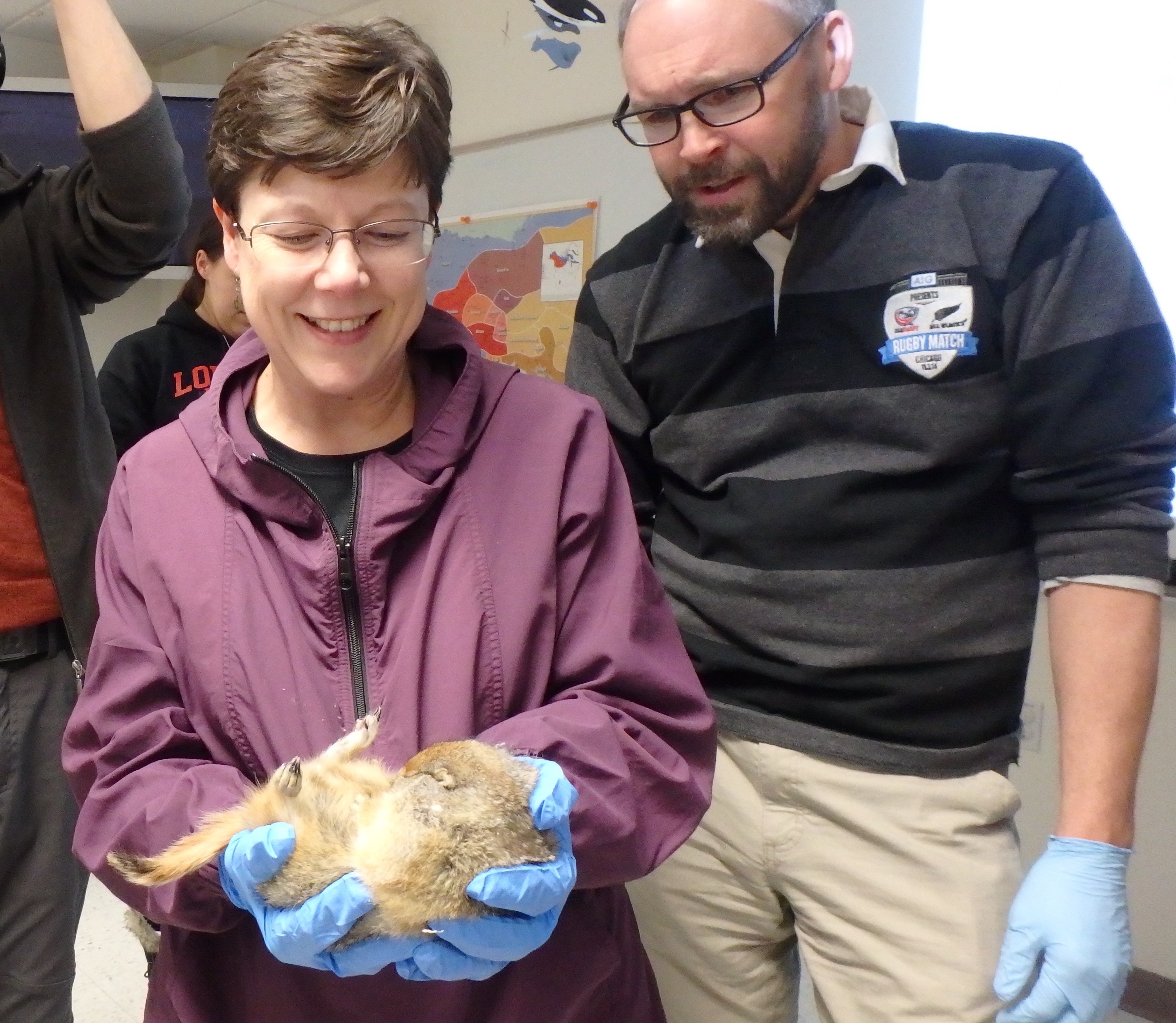 Sandra Thornton holds a hibernating Arctic ground squirrel at the Museum of the North at the University of Alaska Fairbanks.
