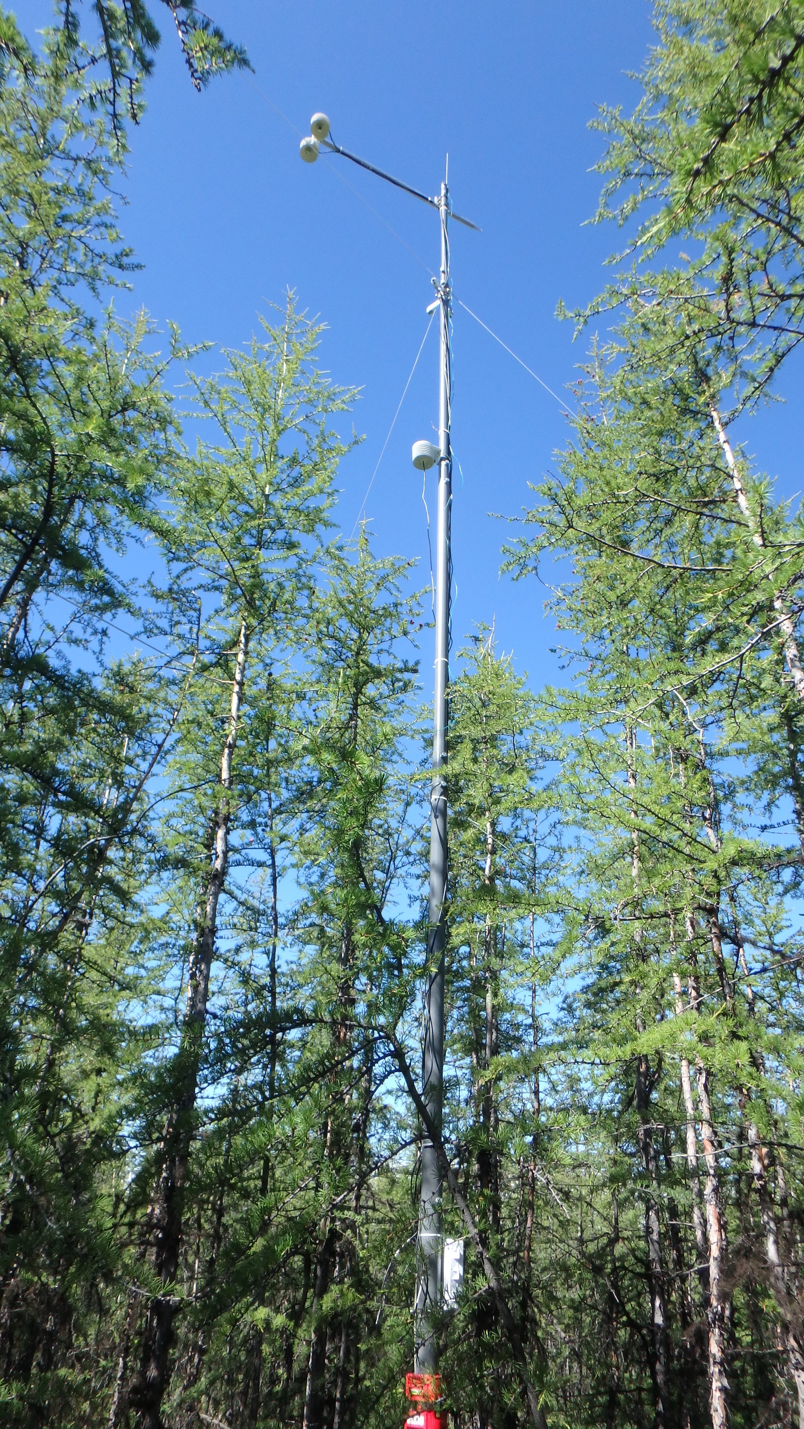 The 8 meter tower with radiometer, temperature, and humidity sensors. Outside of Cherskiy, Russia.
