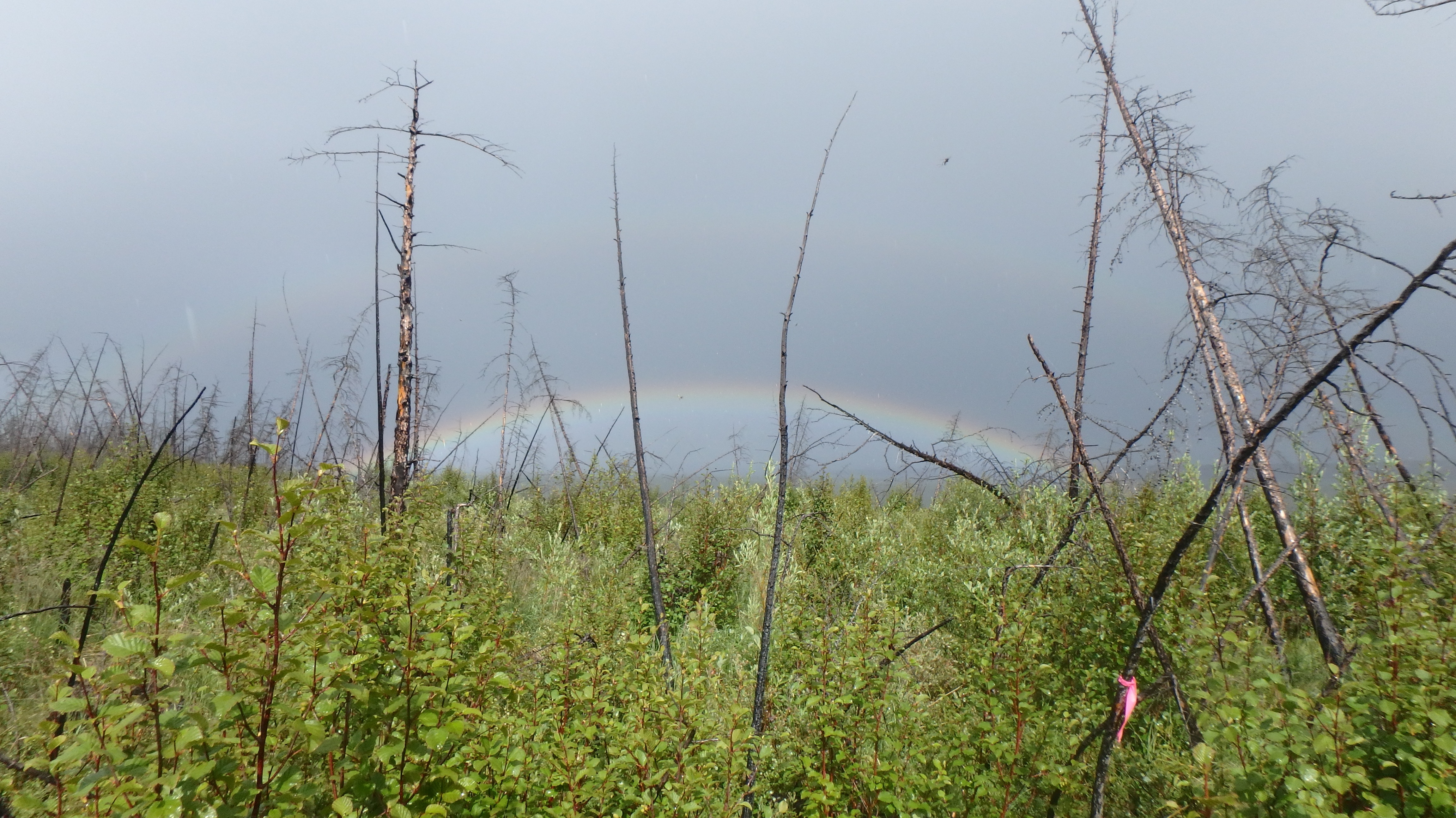 A rainbow amongst the wreckage at the high severity burn site. Outside of Cherskiy, Russia.