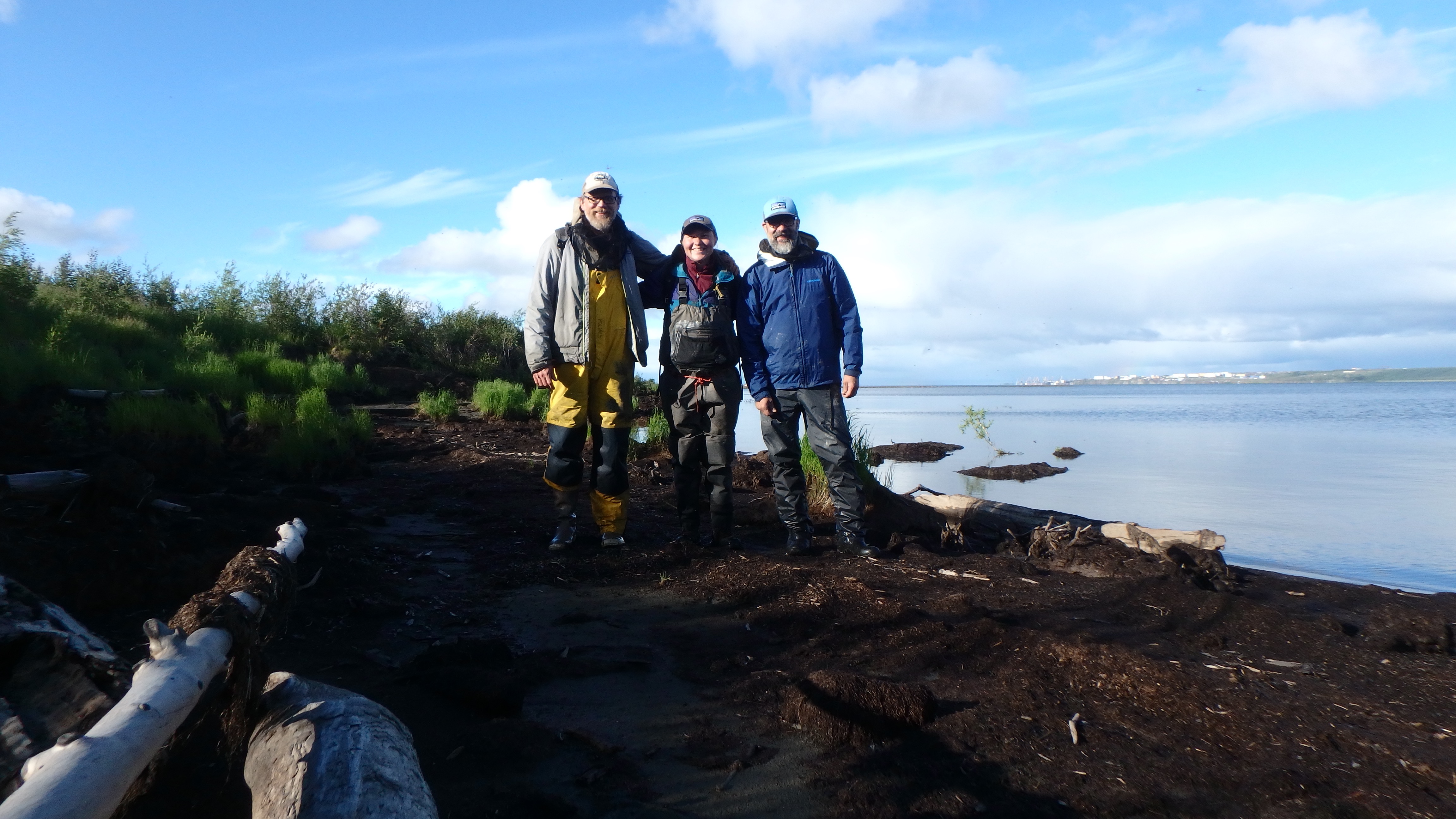 John Schade, McKenzie Kuhn, and Stan Skotnicki after a day of field work at the "Hell Hole" high severity burn site. Outside of Cherskiy, Russia.