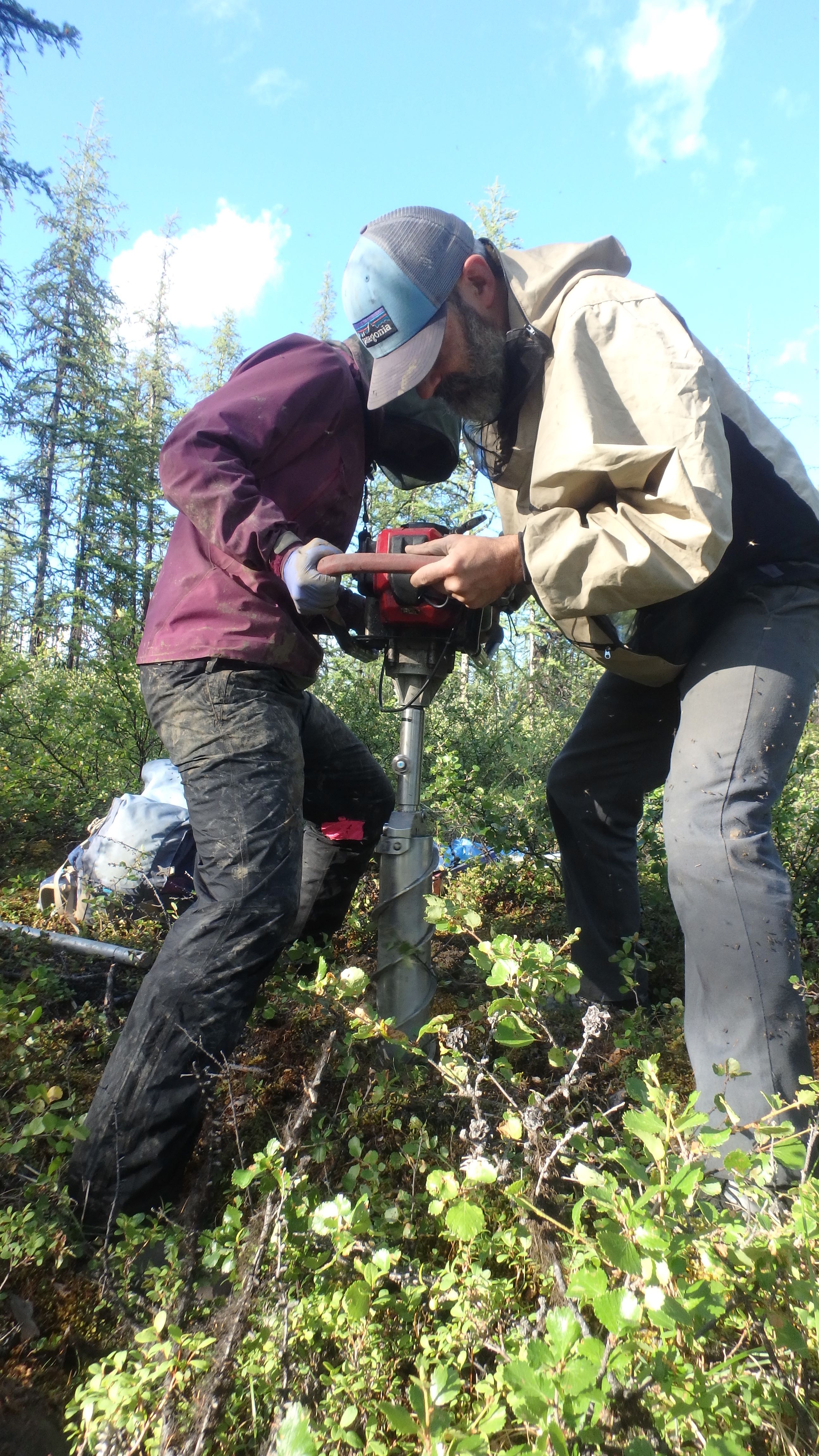 Stan Skotnicki and Ludda Ludwig drill a permafrost ice core in the boreal forest of Northeastern Siberia. Outside of Cherskiy, Russia.