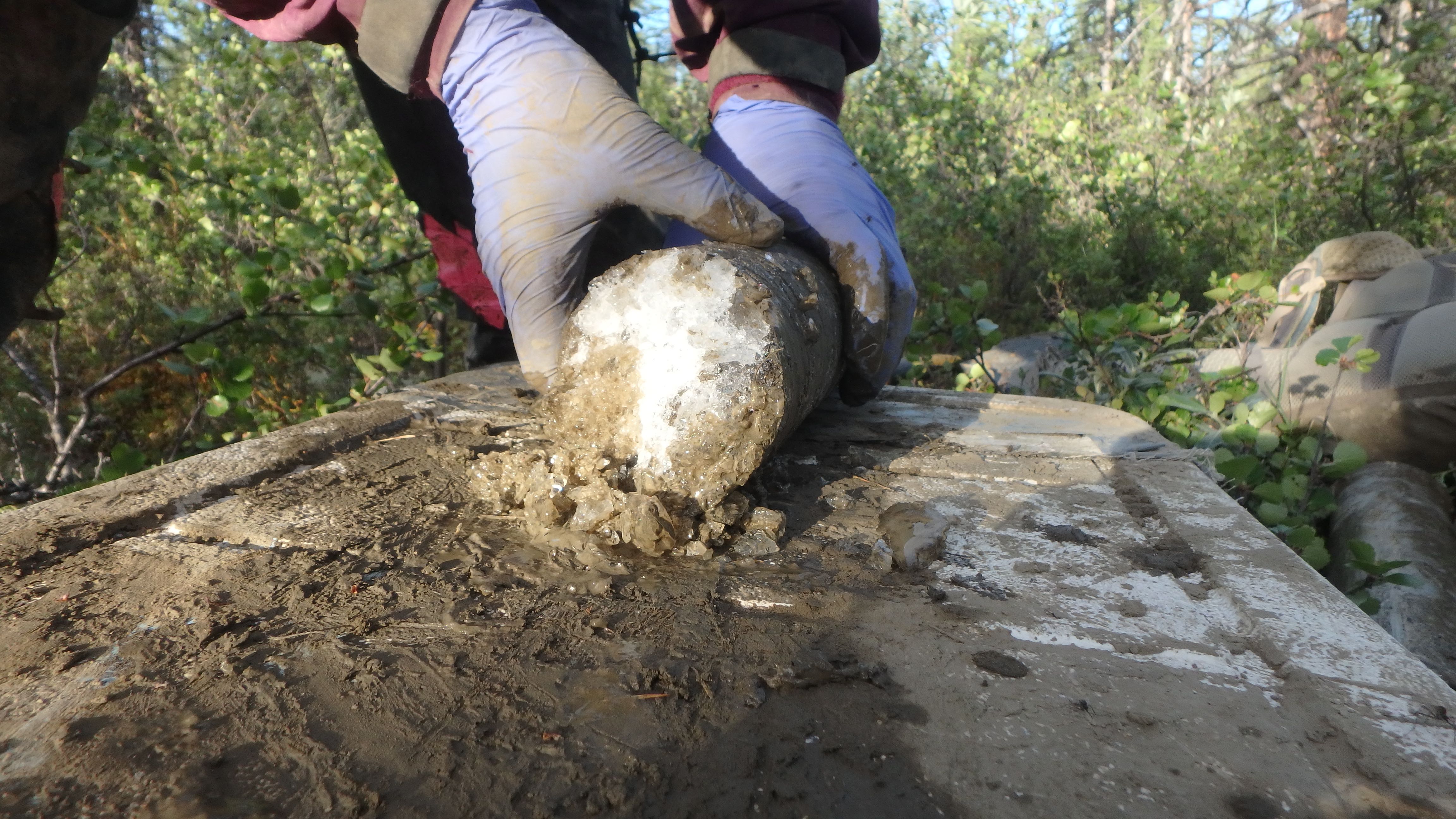 Ludda Ludwig prepares a permafrost ice core for transportation back to the lab to be processed. Outside of Cherskiy, Russia.