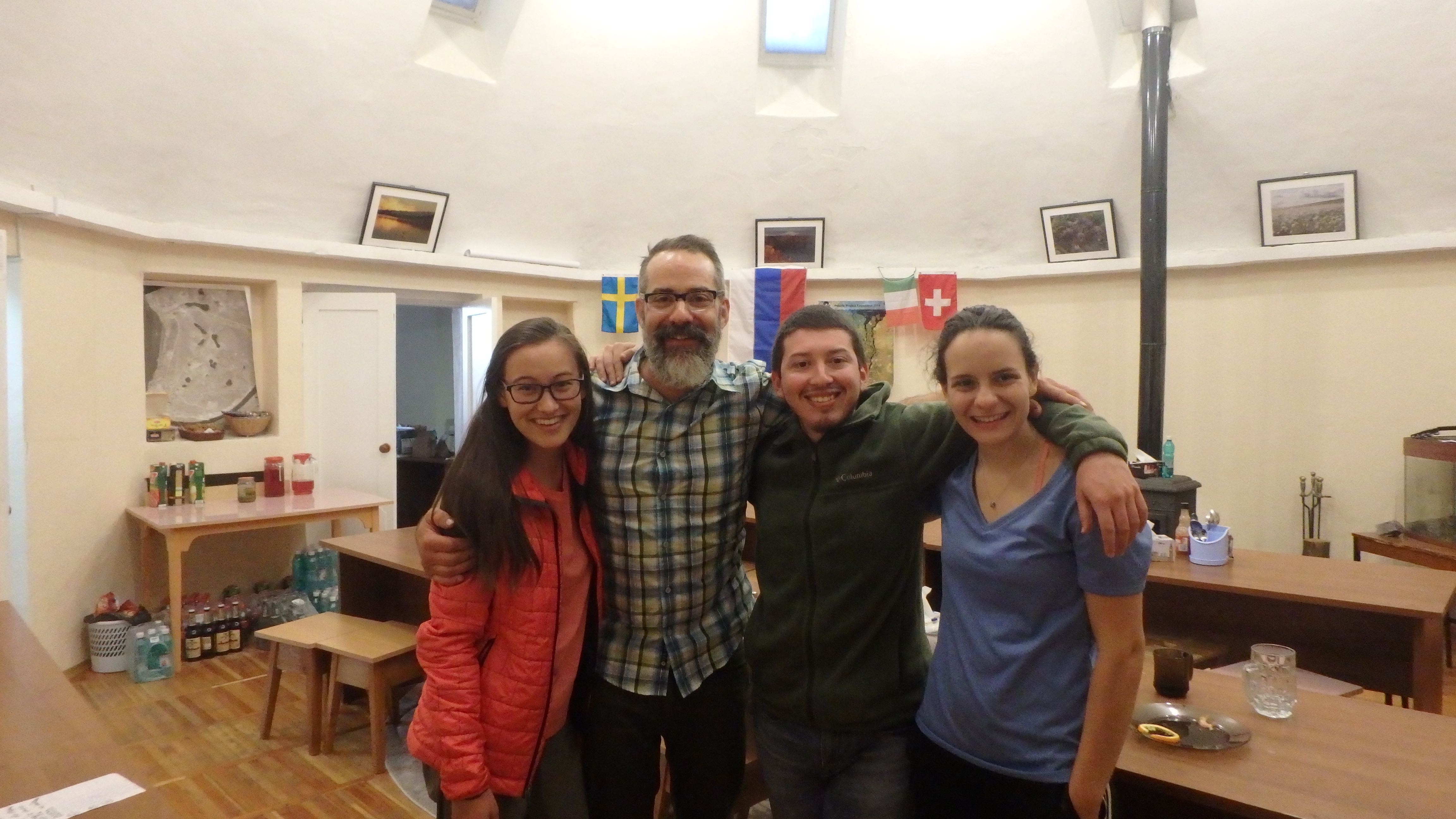 Stan Skotnicki with the future all stars of science: Corey Ruder, Homero Pena, and Ana Tobio. Cherskiy, Russia.