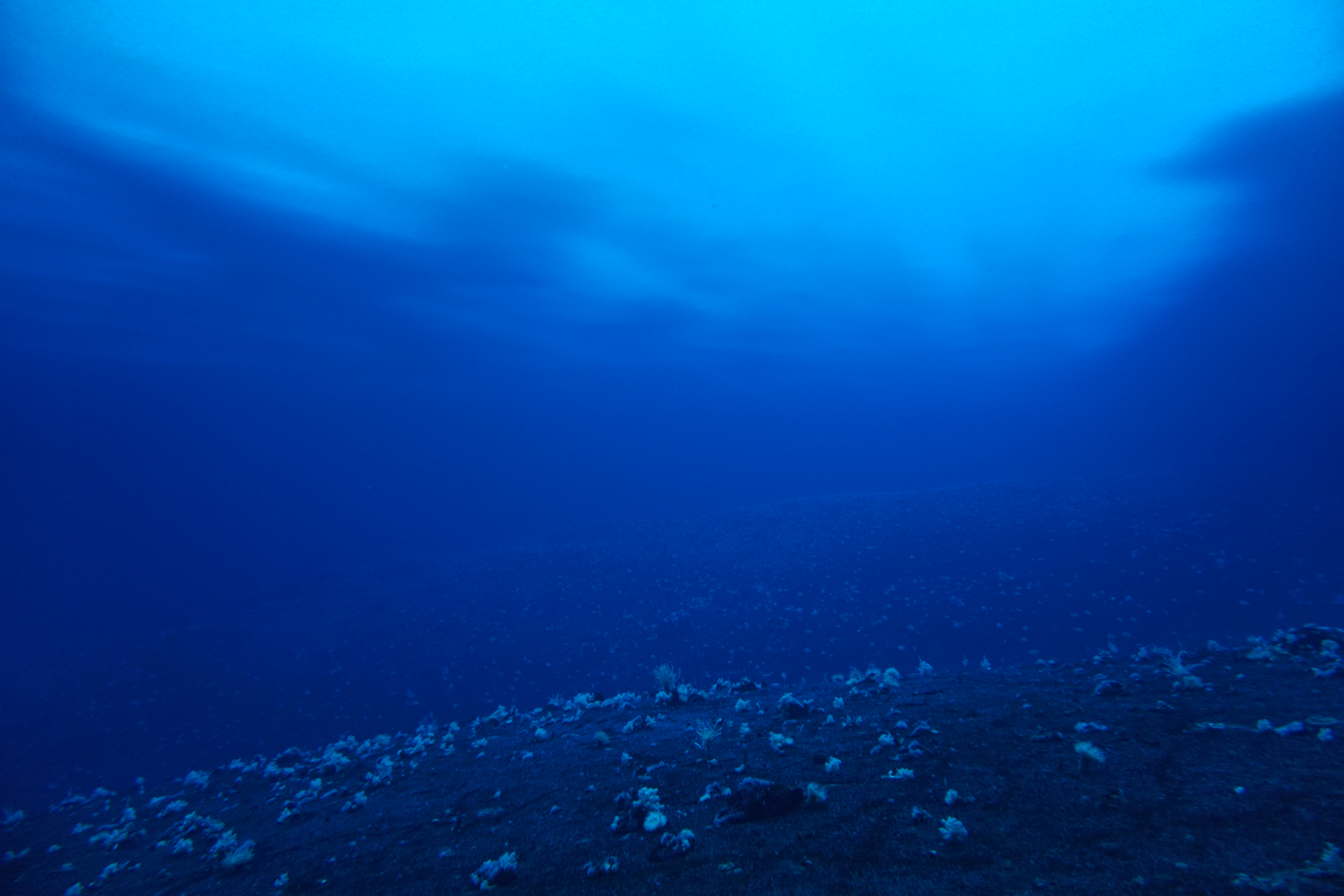 Dr. Art Woods and Dr. Amy Moran dive at the lower edge of the McMurdo Jetty. Visibility under the ice is nearly unlimited. McMurdo Station, Antarctica.
