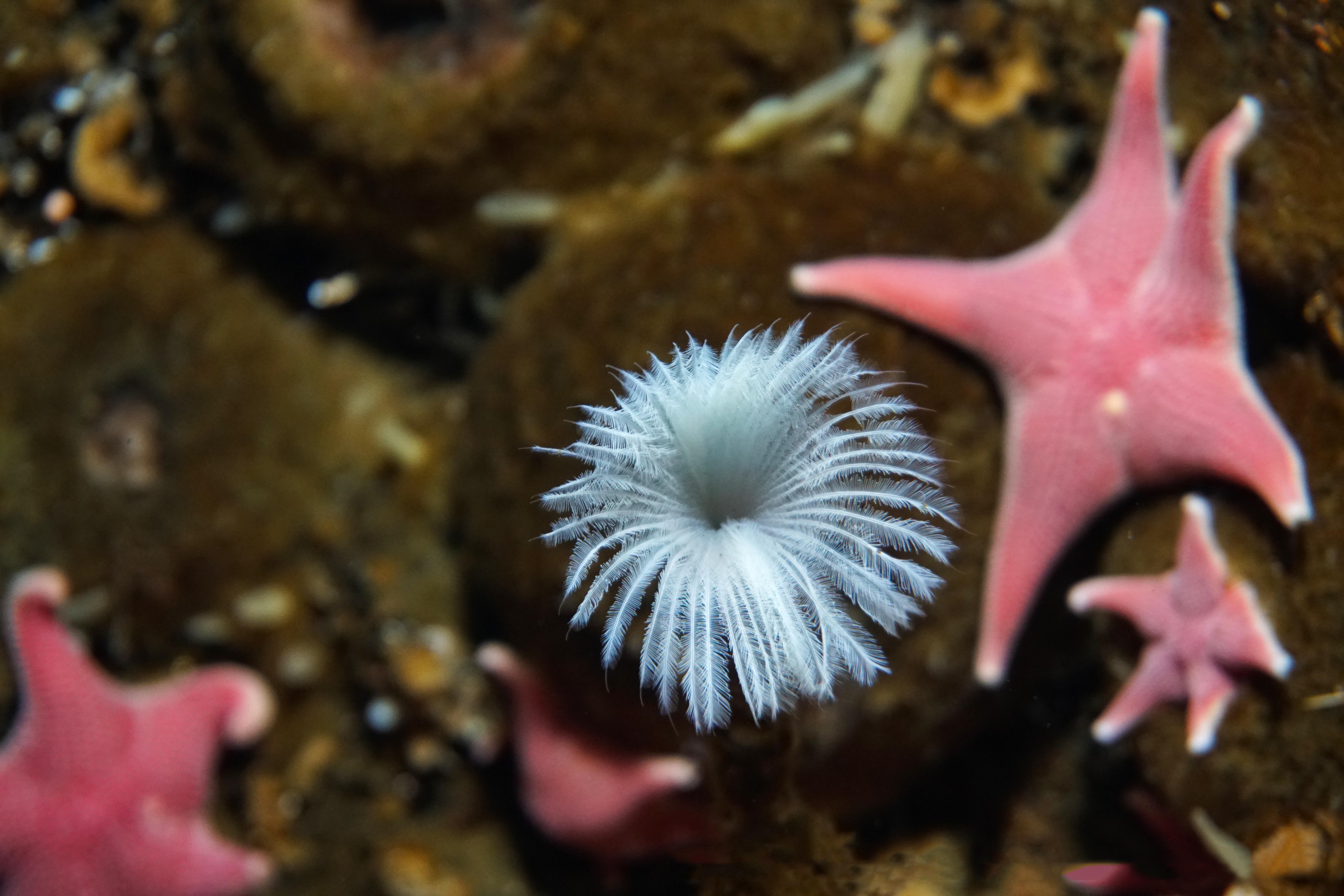 Antarctic polychaete worms can reach unusual large sizes. Turtle Rock, Antarctica.