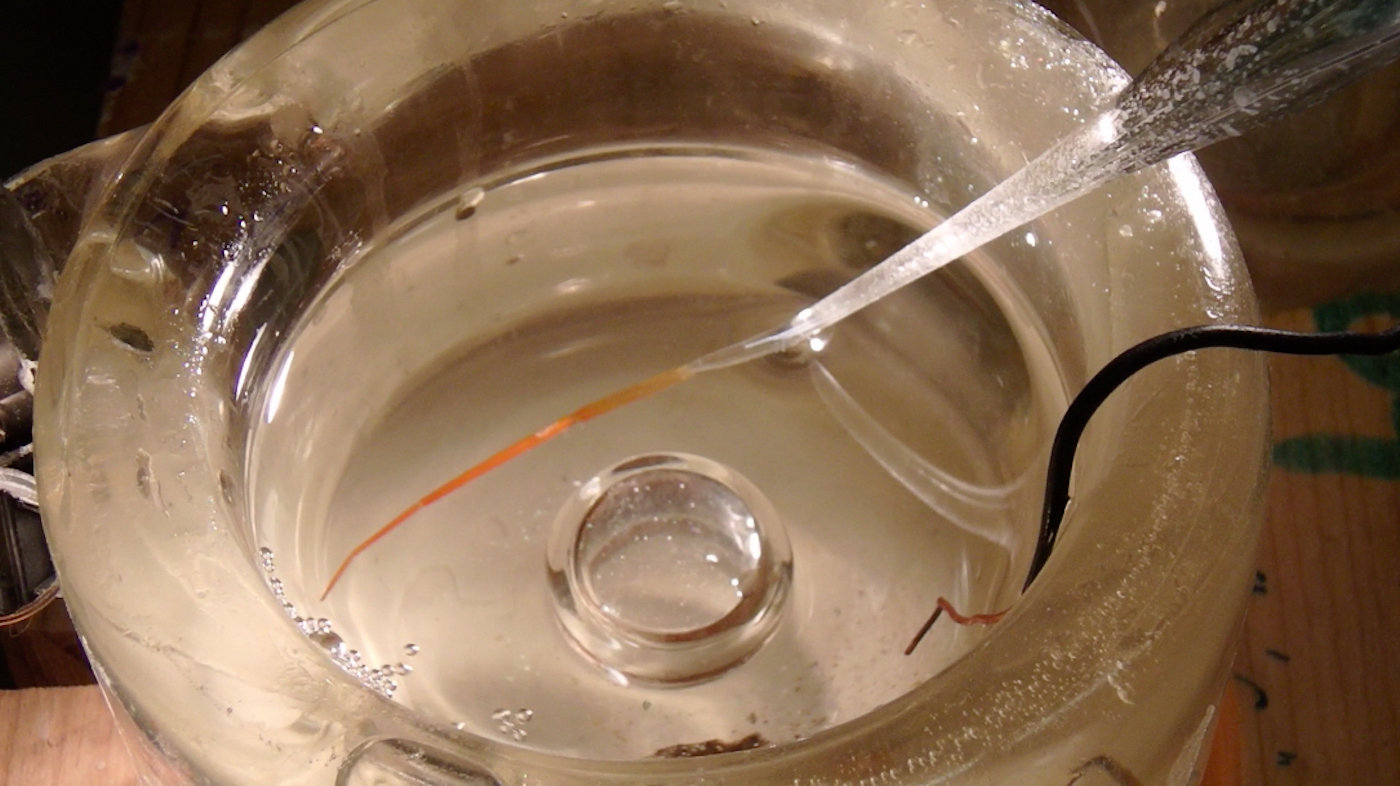 A glass oxygen electrode inside a sea spider leg gives a reading of the difference in oxygen inside the leg compared to outside. McMurdo Station, Antarctica.