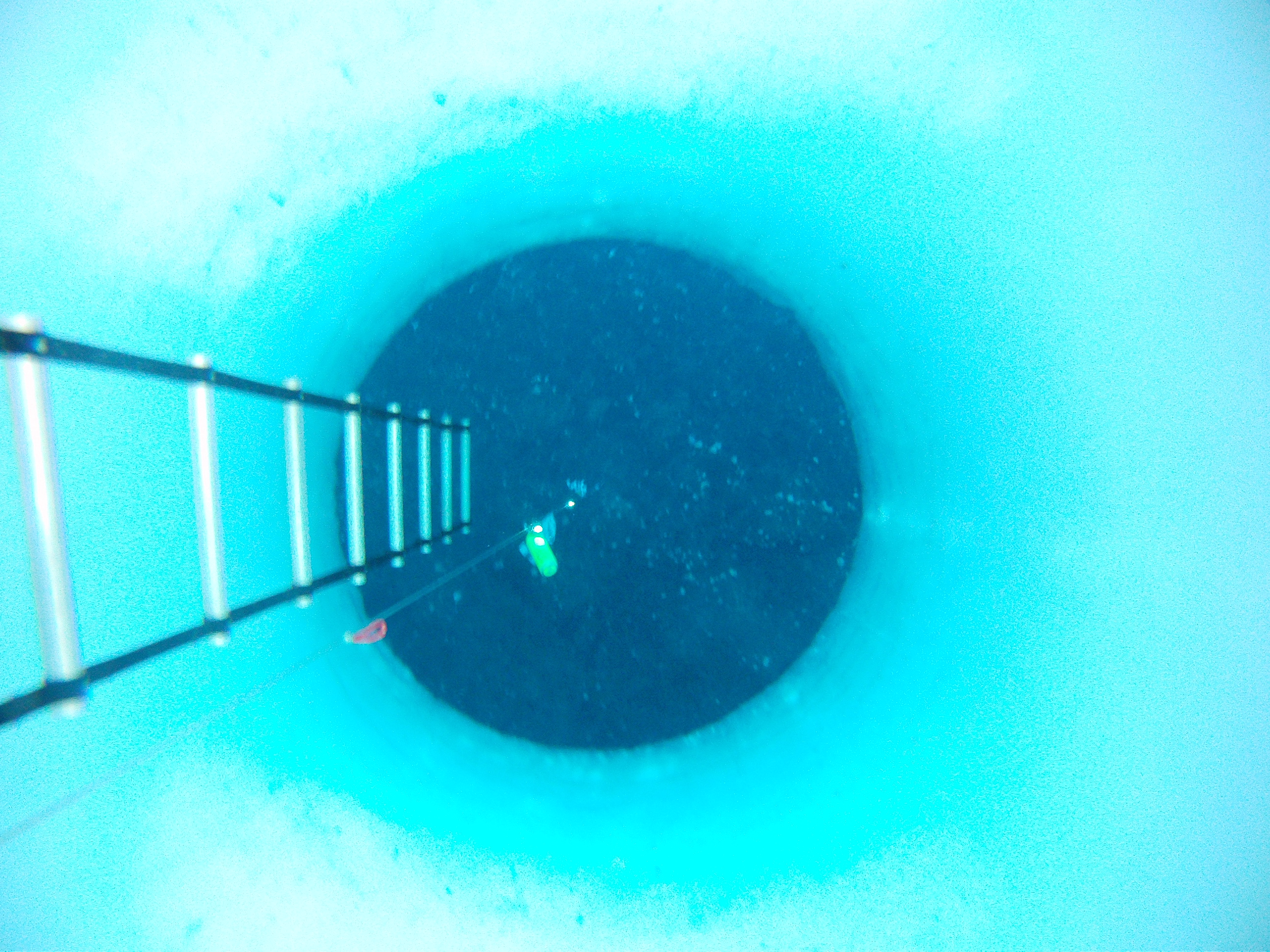 The only way below the ice is through one of these 4ft (1.3m) diameter boreholes. McMurdo Station, Antarctica.