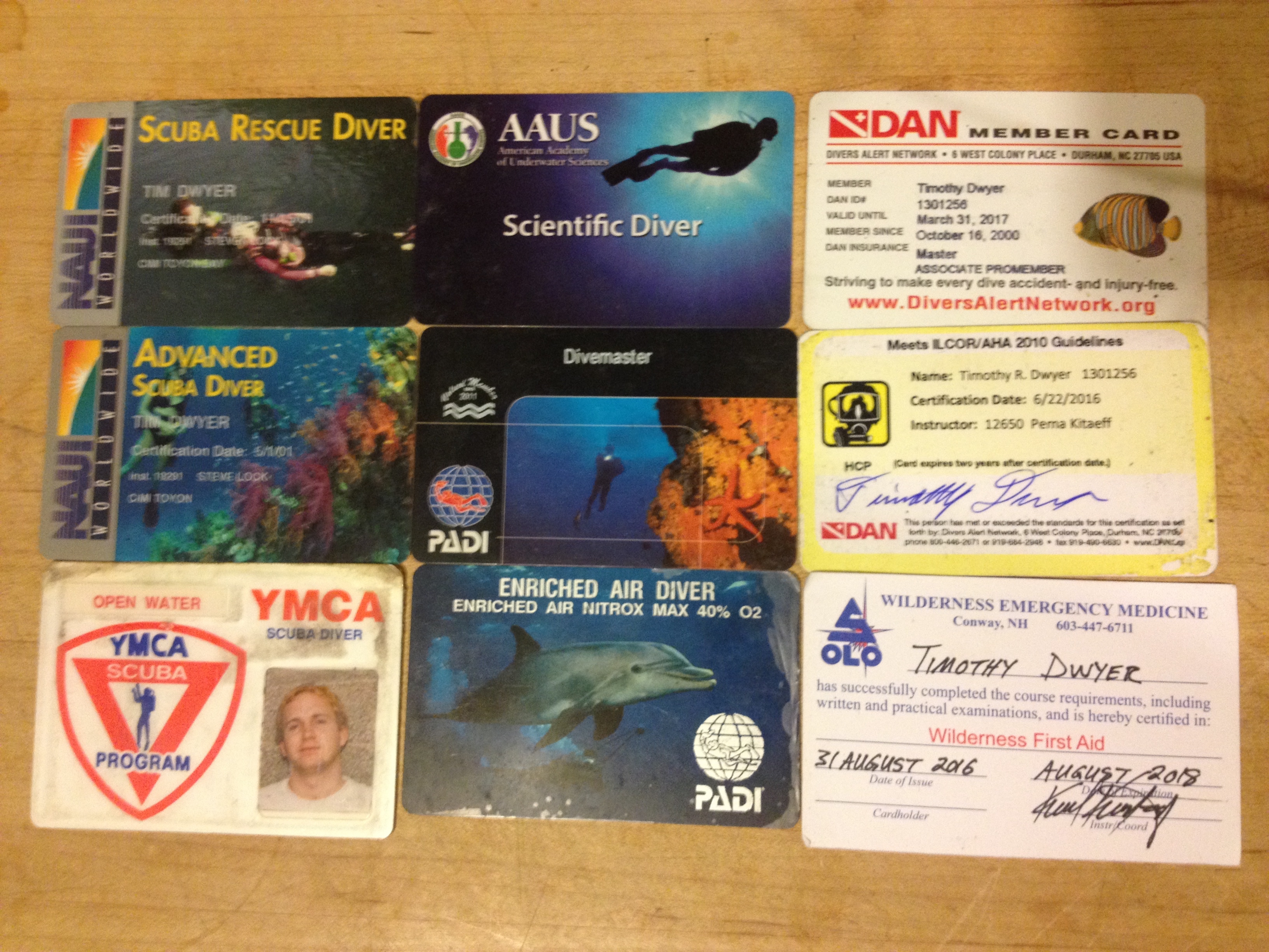 Timothy Dwyer: "Scuba diving under the ice at the bottom of the world requires substantial training. These are some of the certifications required to dive in Antarctica." McMurdo Station, Antarctica.