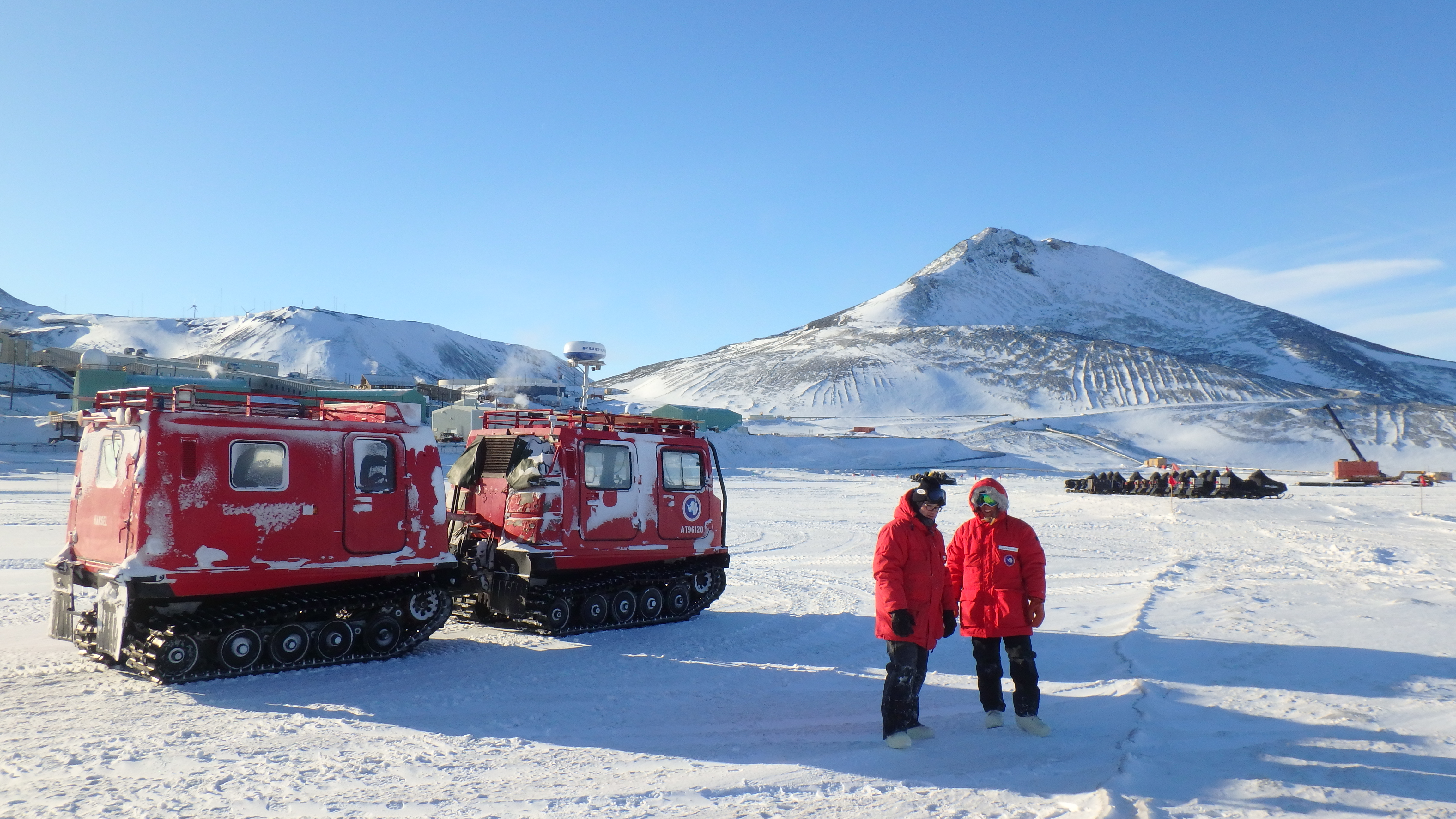 Tracked vehicles like this Hägglunds are the primary means of traversing the sea ice between field sites. McMurdo Station, Antarctica.
