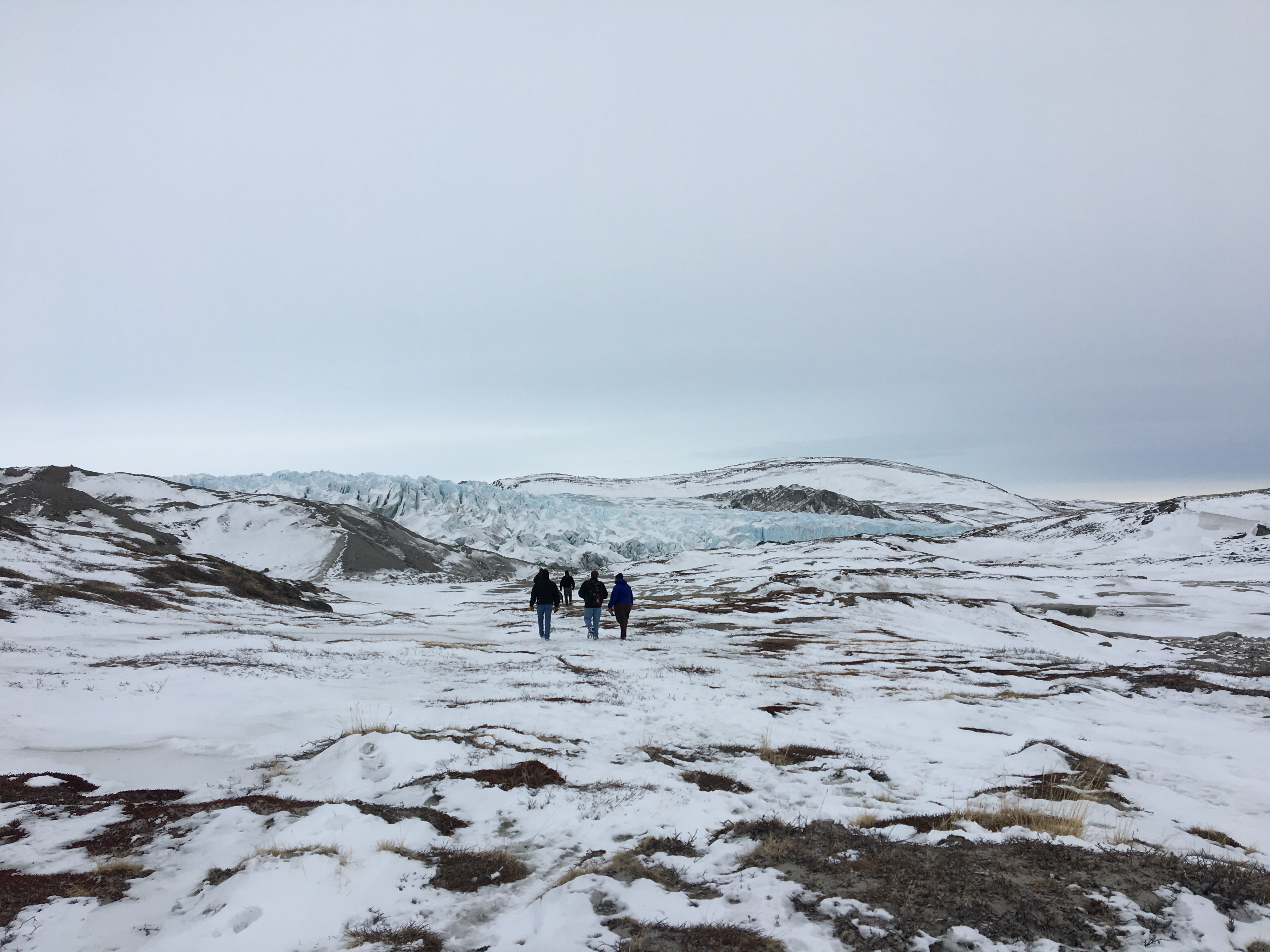 The team hikes out to Russell Glacier near Kangerlussuaq, Greenland.