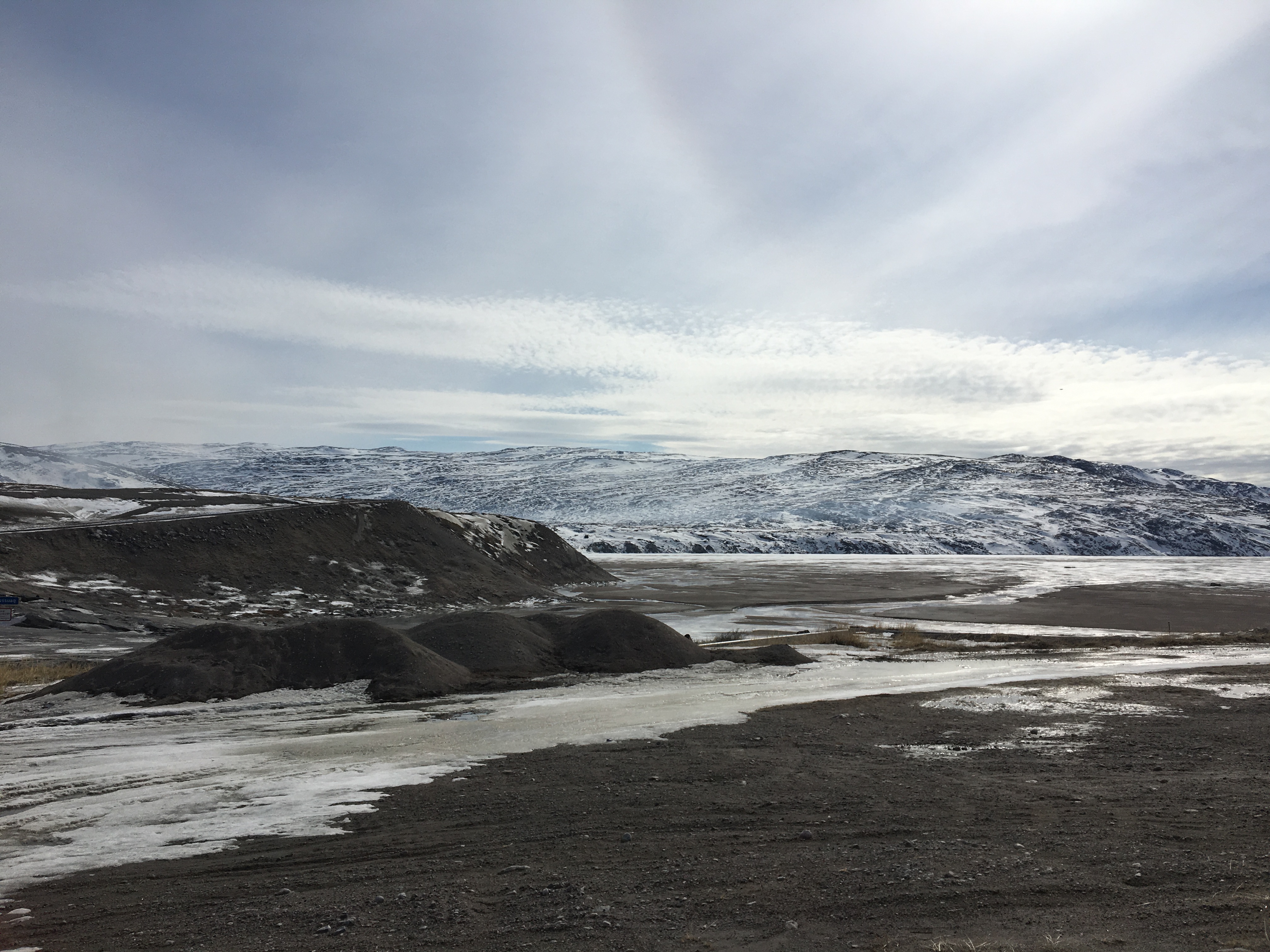 Just outside the town of Kangerlussuaq, Greenland is a dry riverbed that will eventully fill up with the spring melt water.