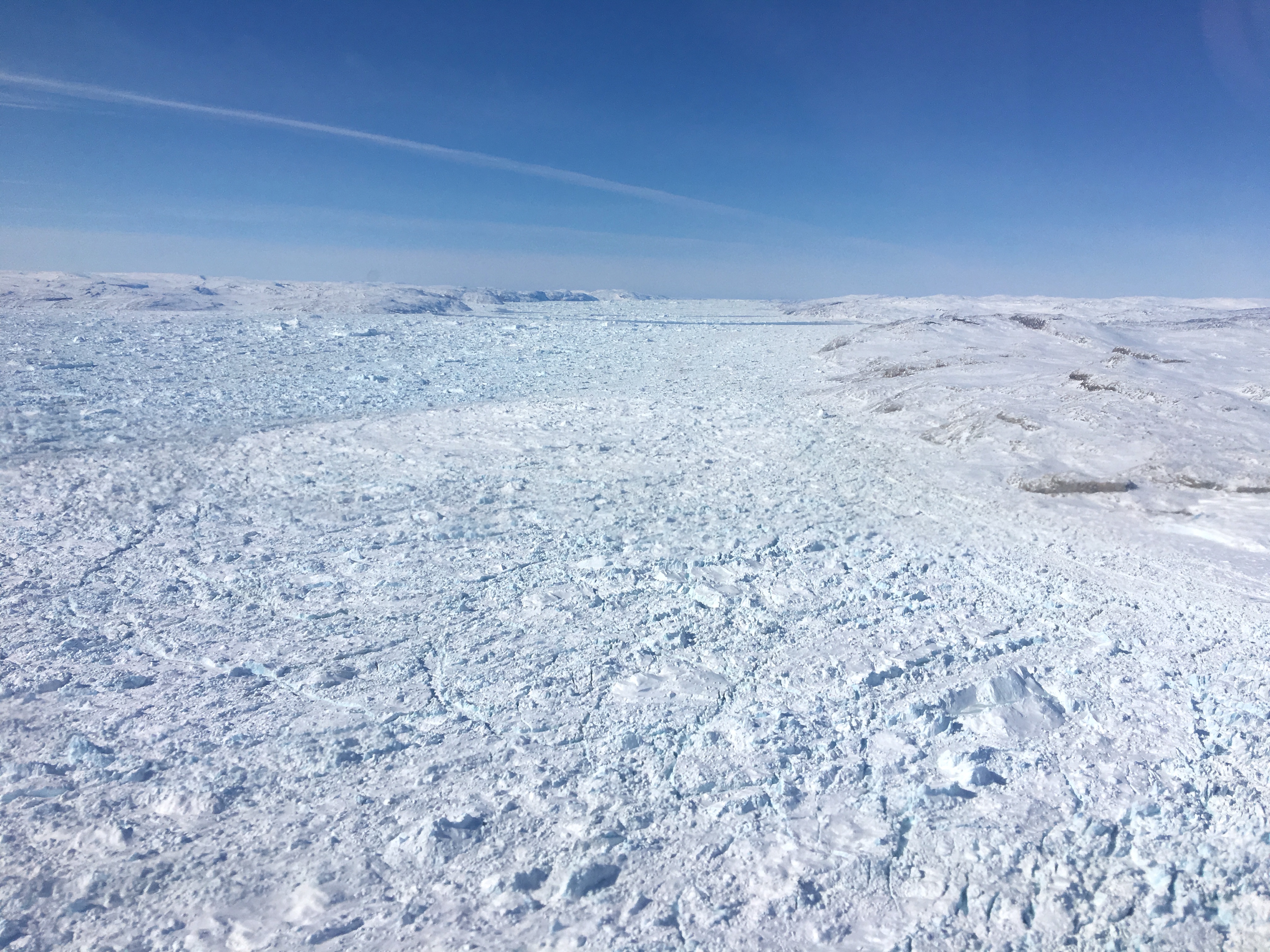 A view of the calving front at Jakobshavn Glacier in Southwest Greenland.