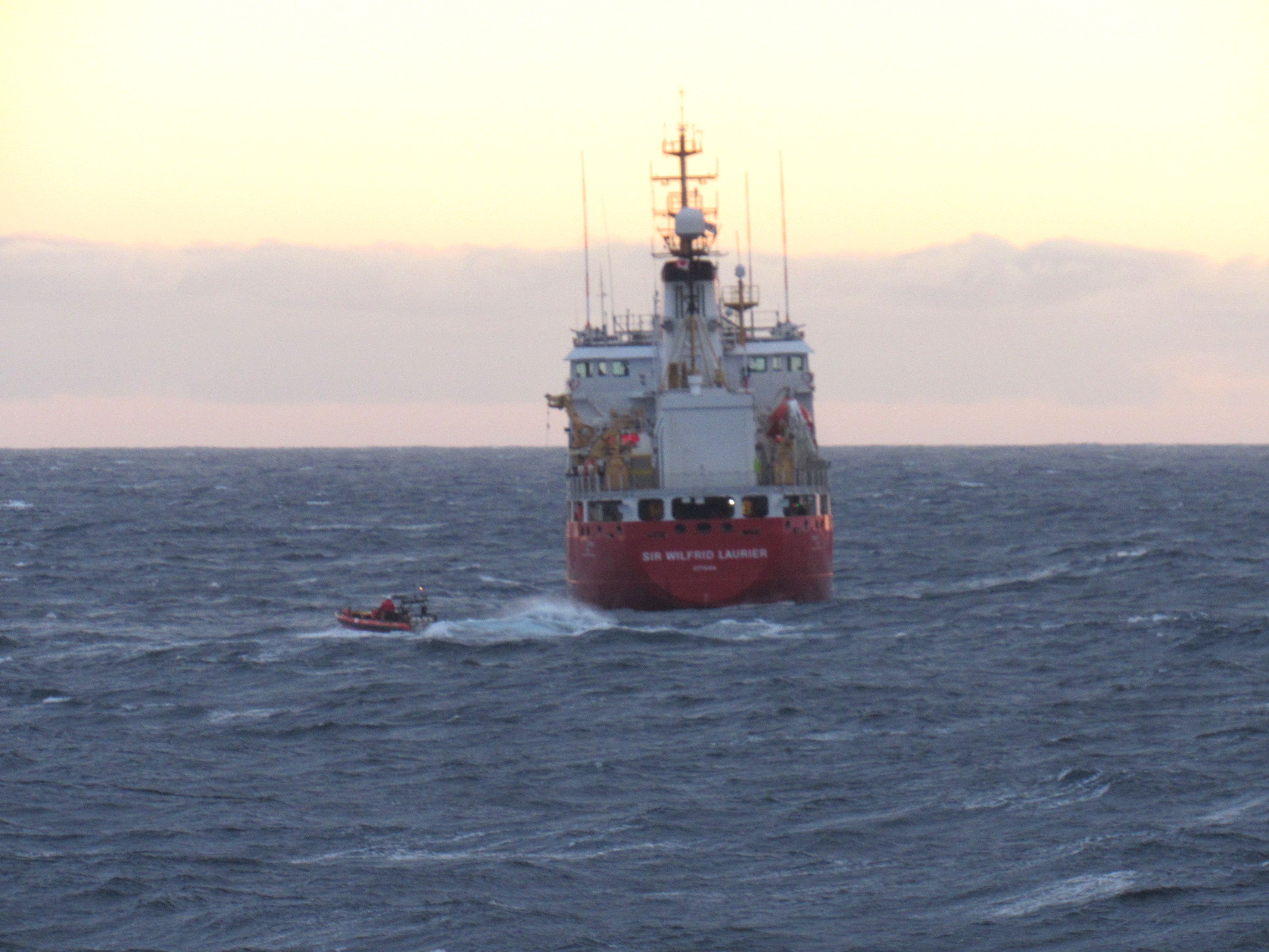 A view of the CCGS Sir Wilfrid Laurier. Aboard the CCGS Louis S. St-Laurent in the Beaufort Sea.
