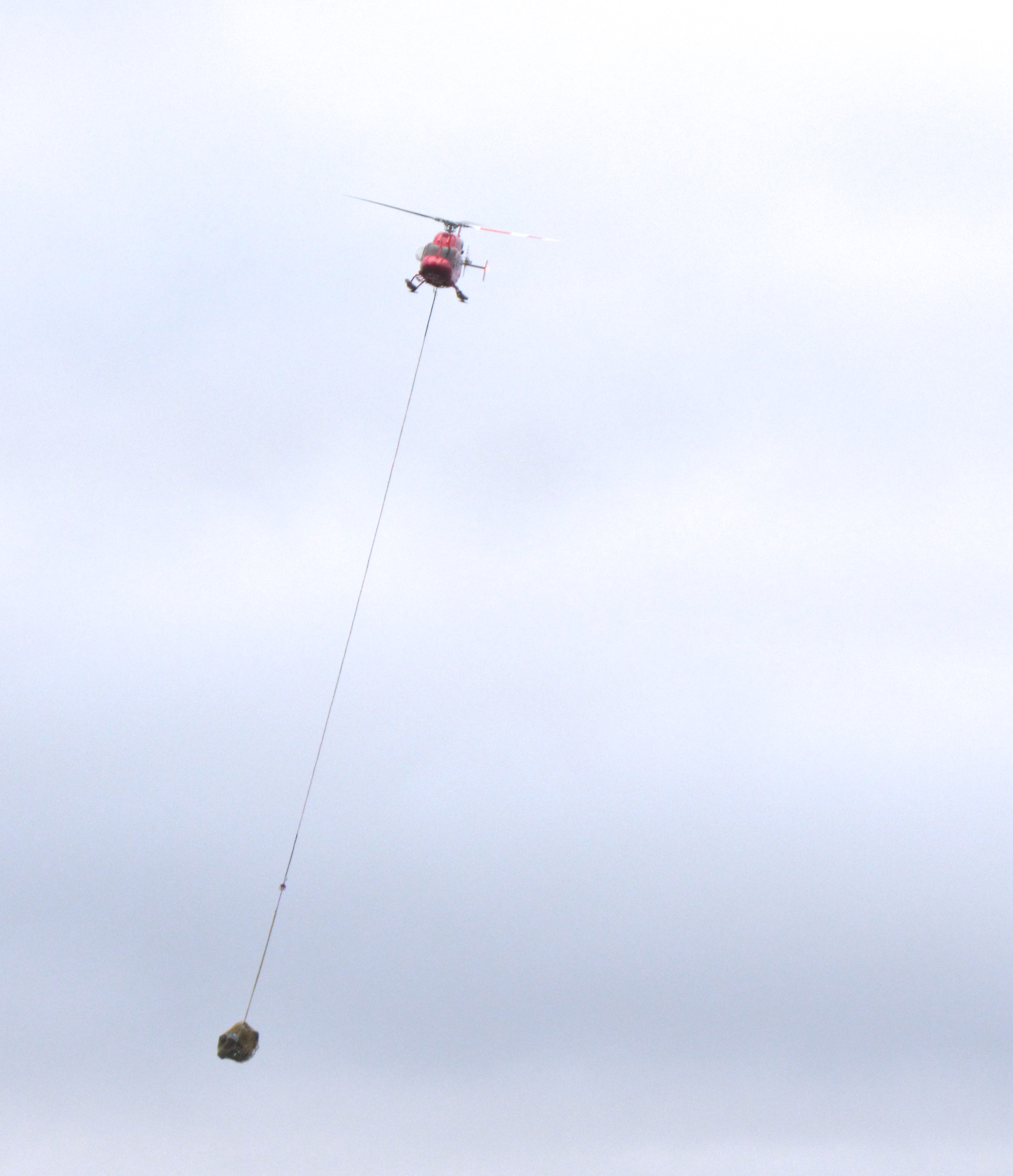 The helicopter from the CCGS Louis S. St-Laurent transports luggage from the ship to the airport at Kugluktuk, Nunavut, Canada.