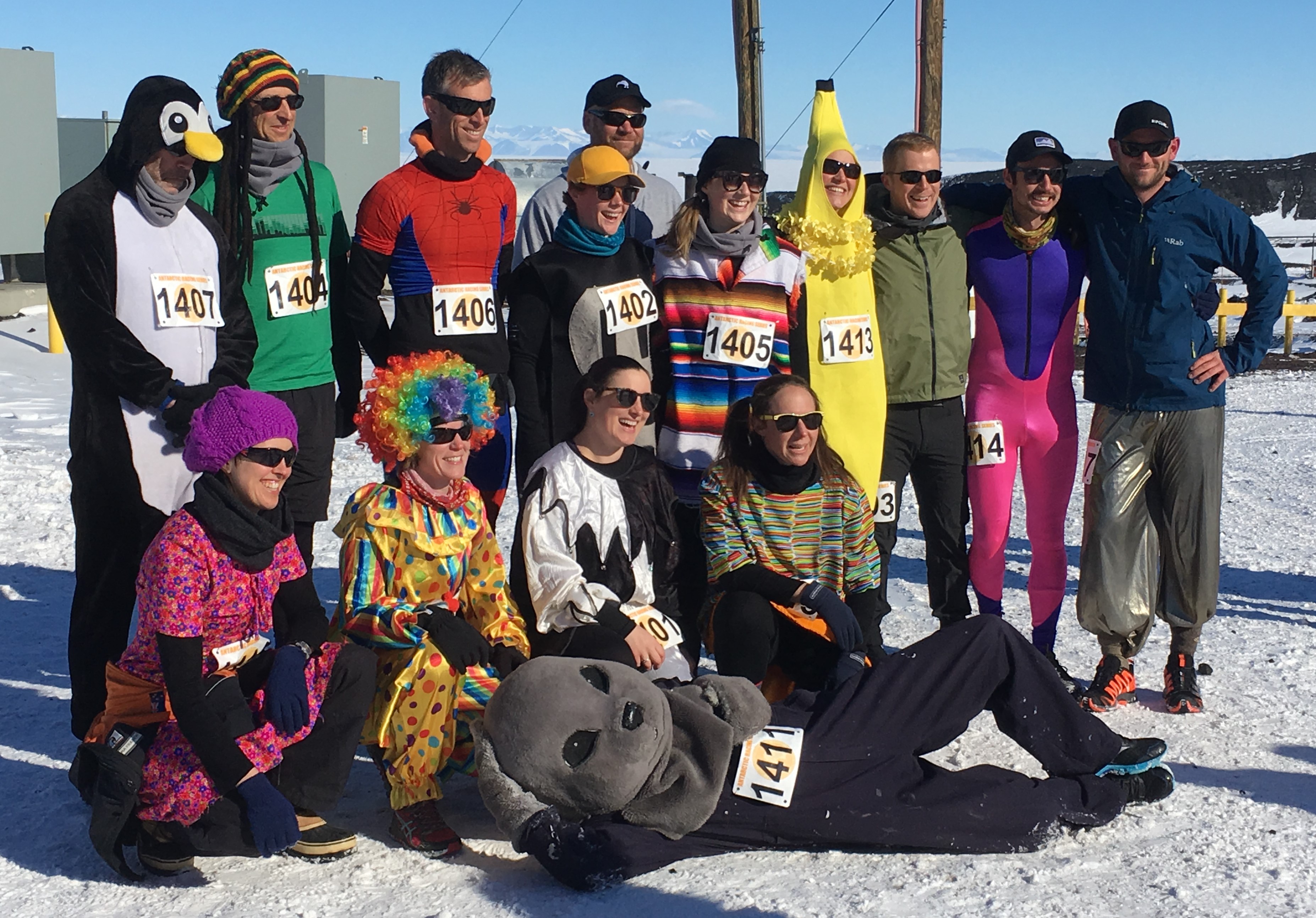 Participants in the Turkey Trot Thanksgiving day race at McMurdo Station, Antarctica.