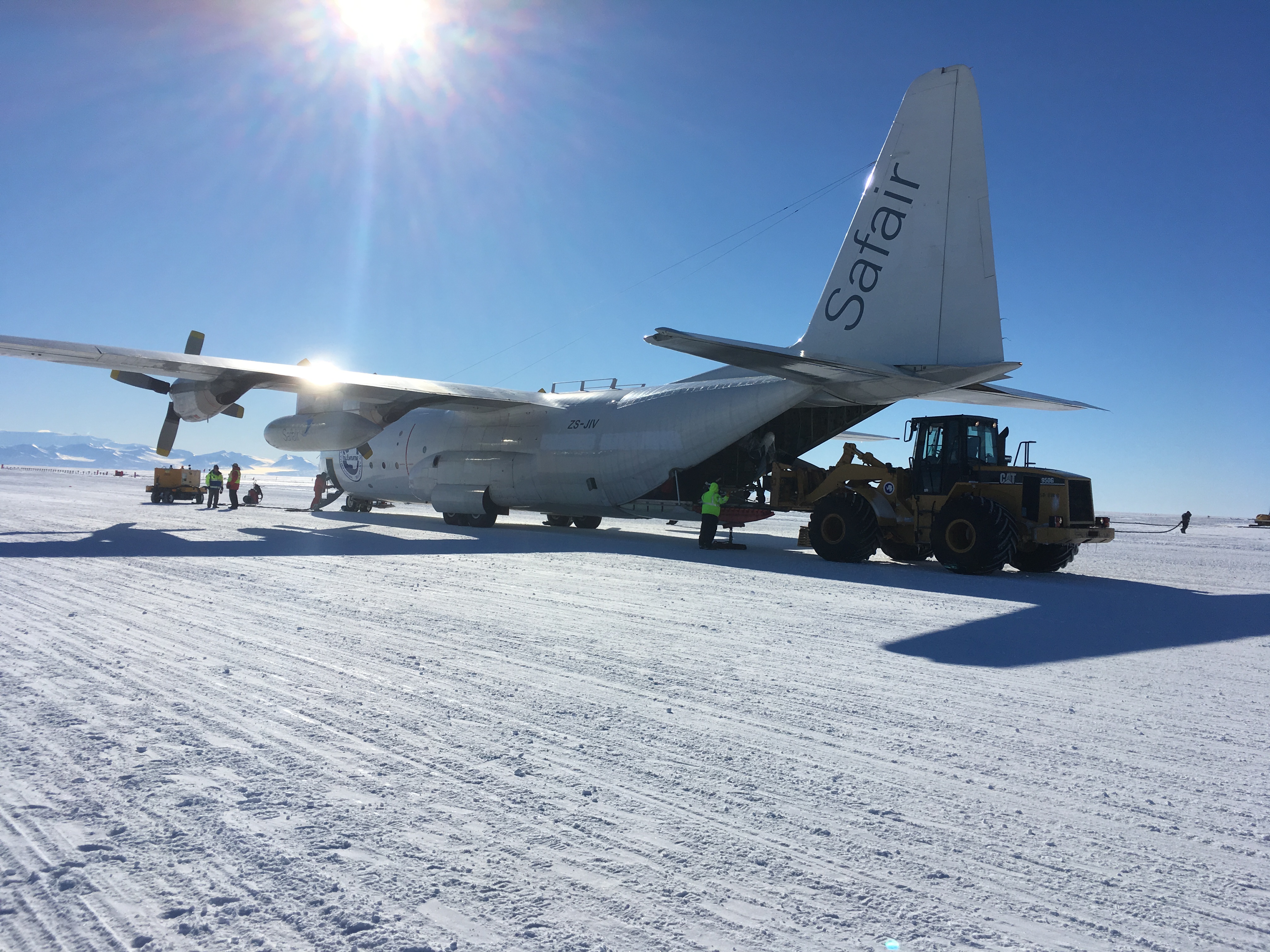 The Safair flight to transport the team back to Christchurch, New Zealand. McMurdo Station, Antarctica.