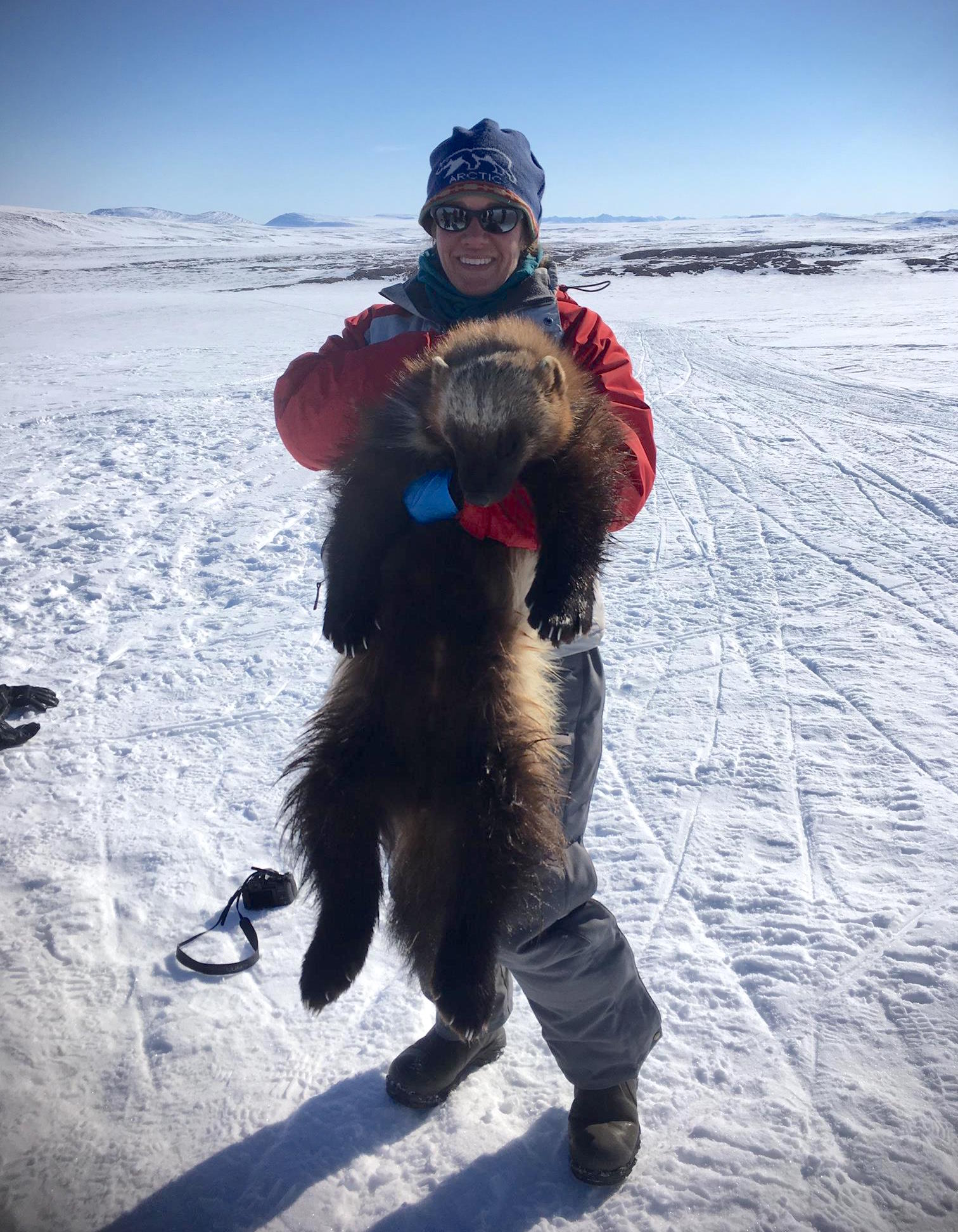 Jennifer Baldacci holds an anesthetized wolverine. Toolik Field Station, Alaska.