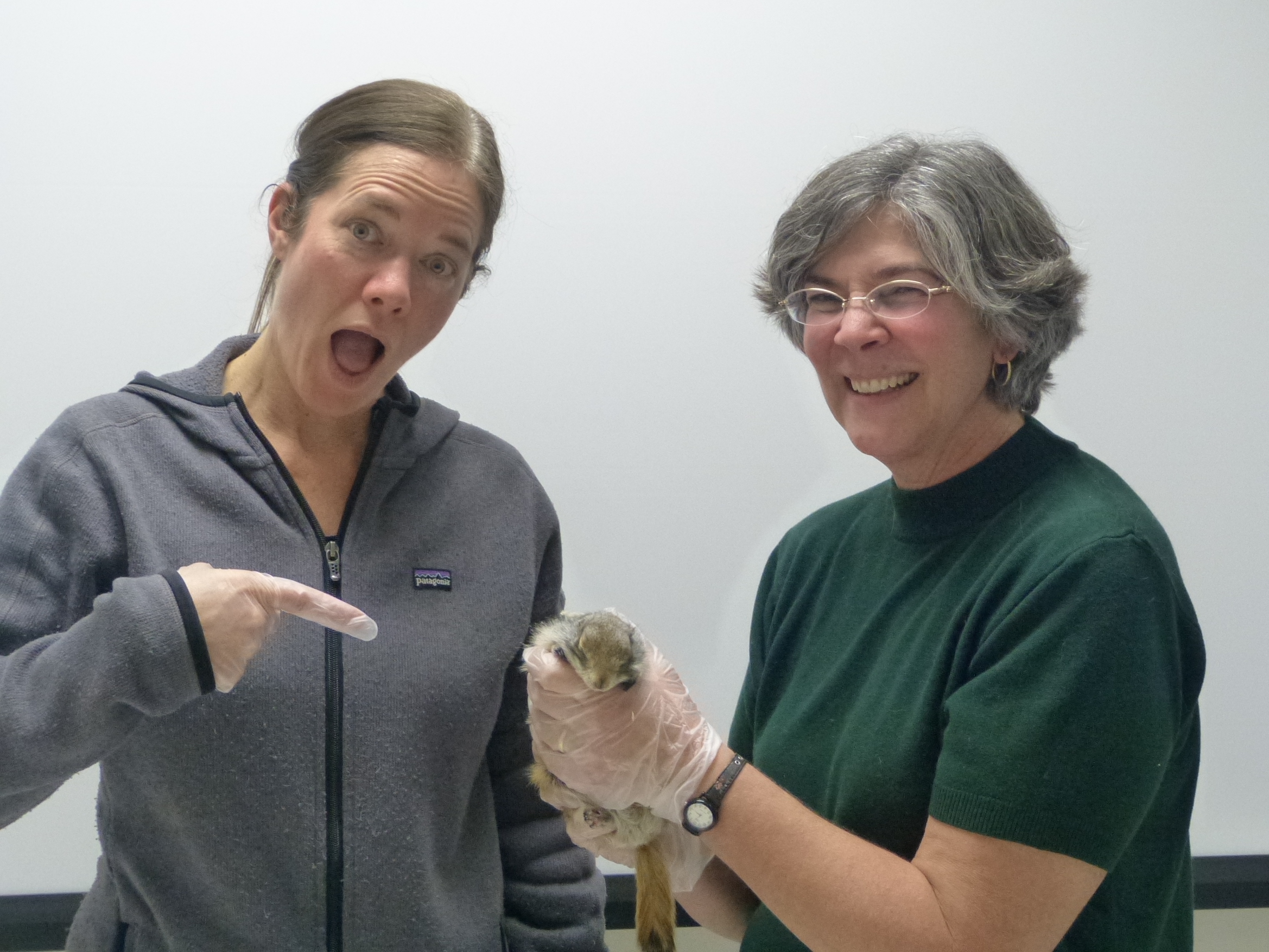 Jennifer Baldacci and researcher Jeanette Moore with a hibernating female Arctic ground squirrel. Museum of the North, University of Alaska Fairbanks, Fairbanks, Alaska.
