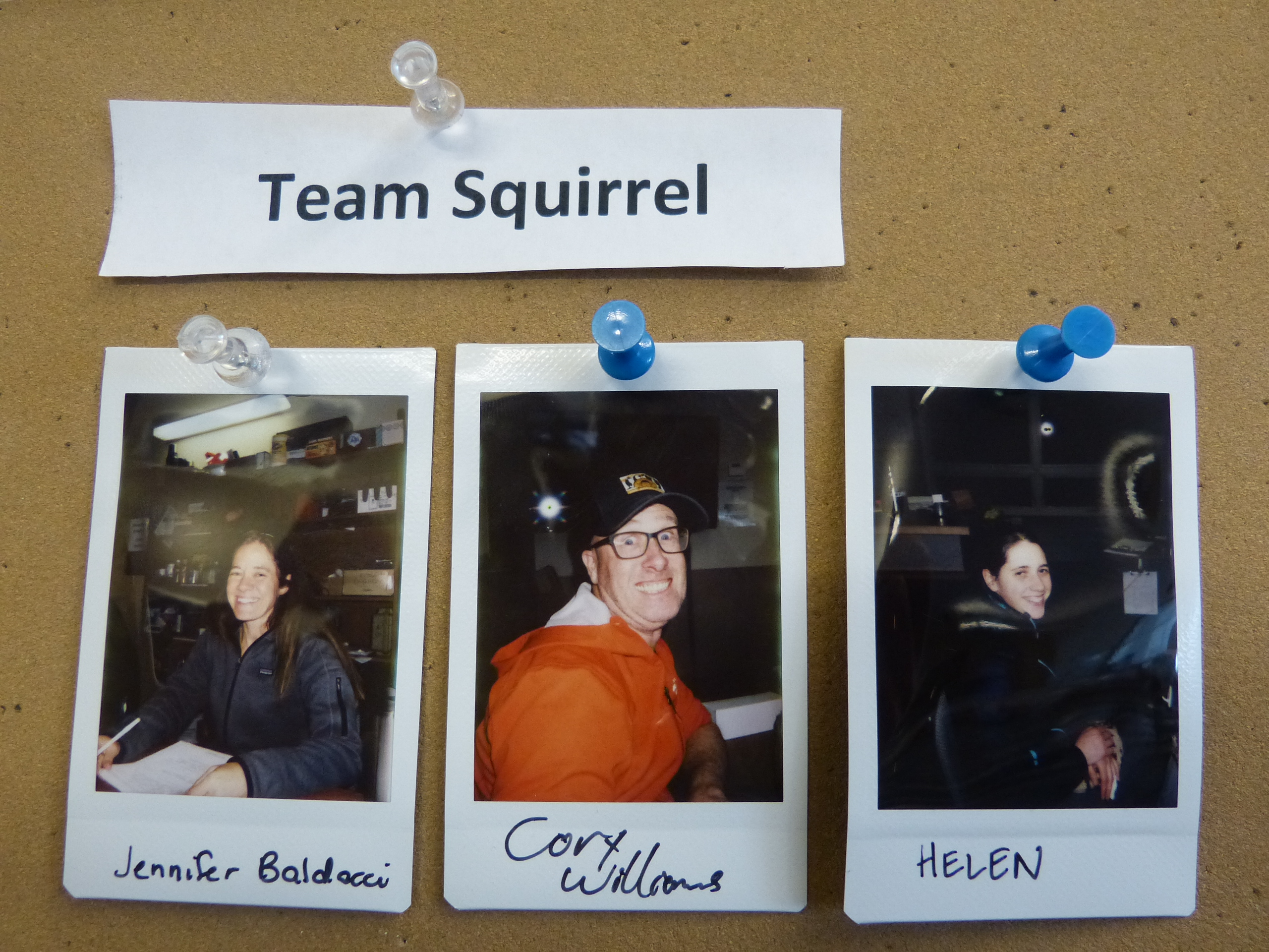 Jennifer Baldacci, Cory Williams, and Helen Chmura on the community bulletin board at Toolik Field Station, Alaska.