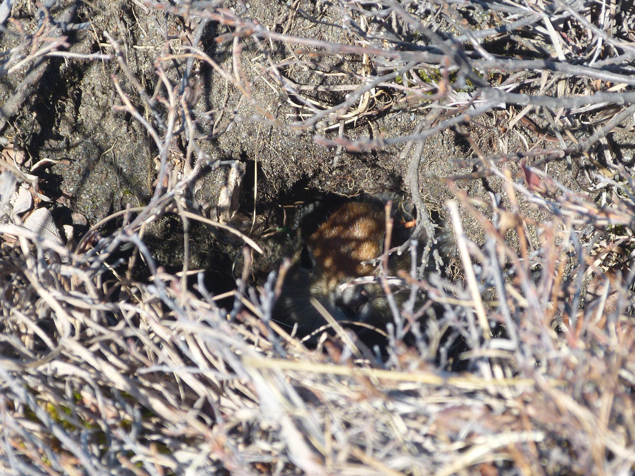 An Arctic ground squirrel in her burrow. At the East Atigun field site near Toolik Field Station, Alaska.
