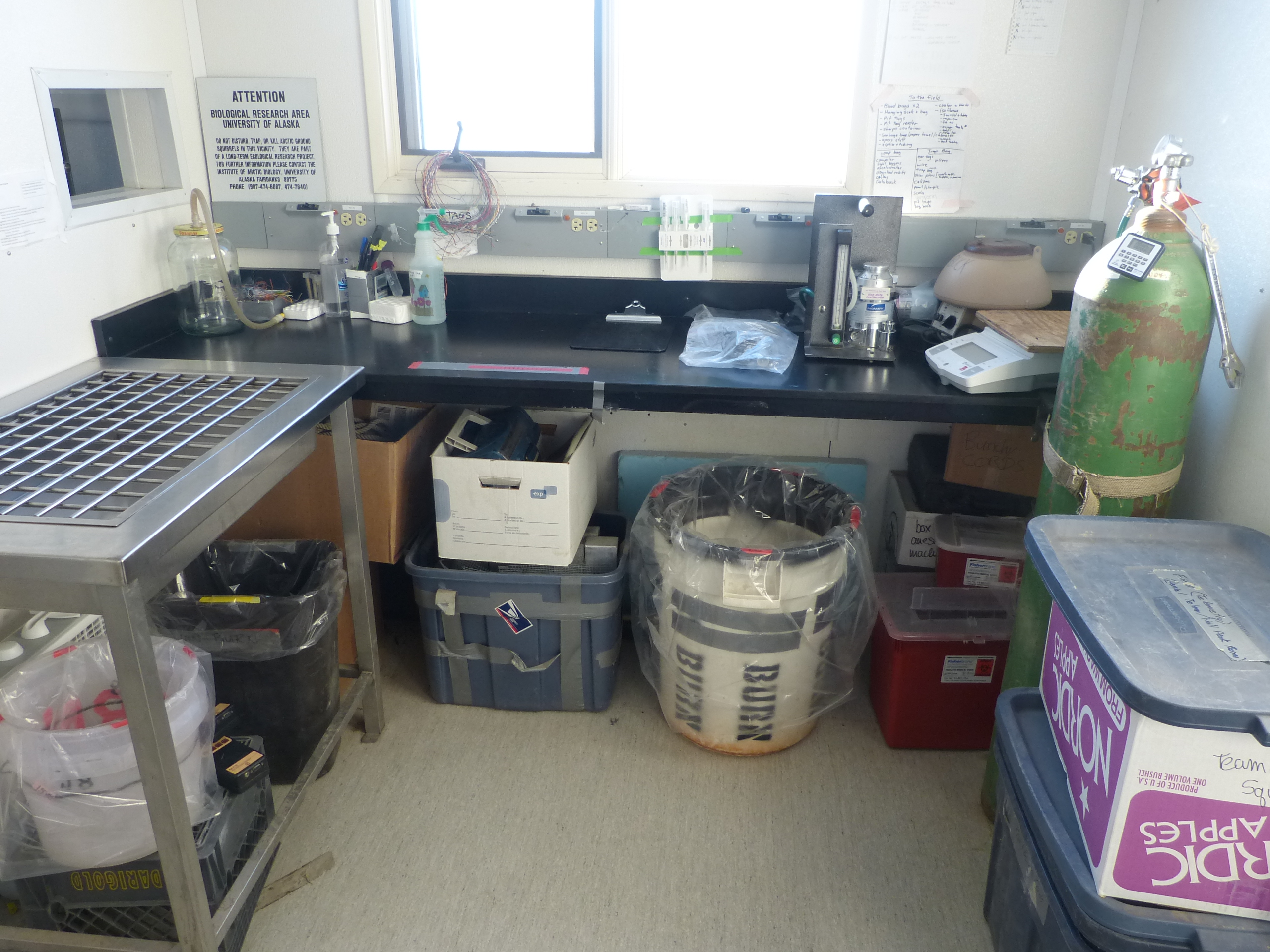 The squirrel processing area in Winter Lab at Toolik Field Station, Alaska.