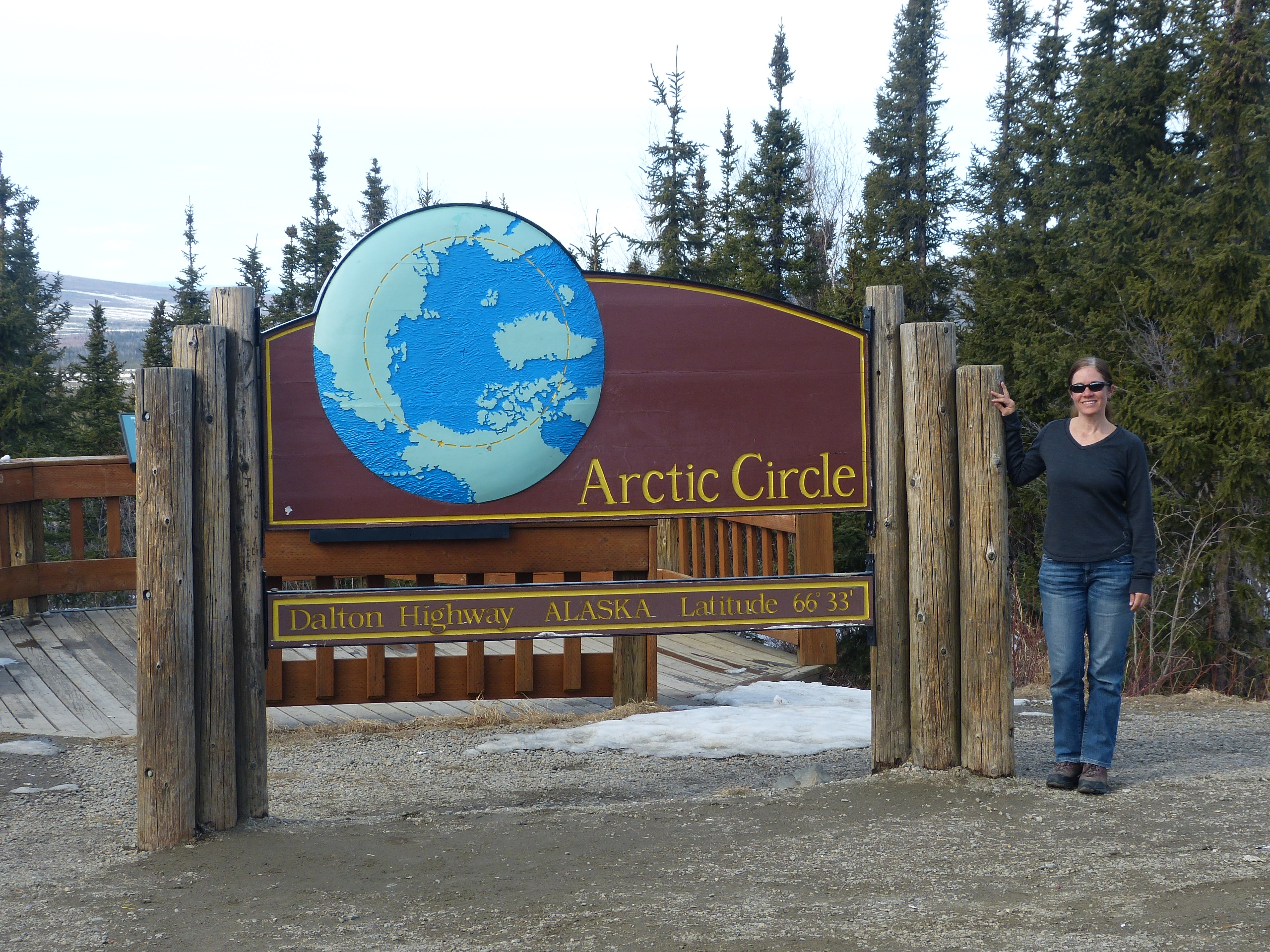 Jennifer Baldacci at the Arctic Circle on the Dalton Highway, Alaska.