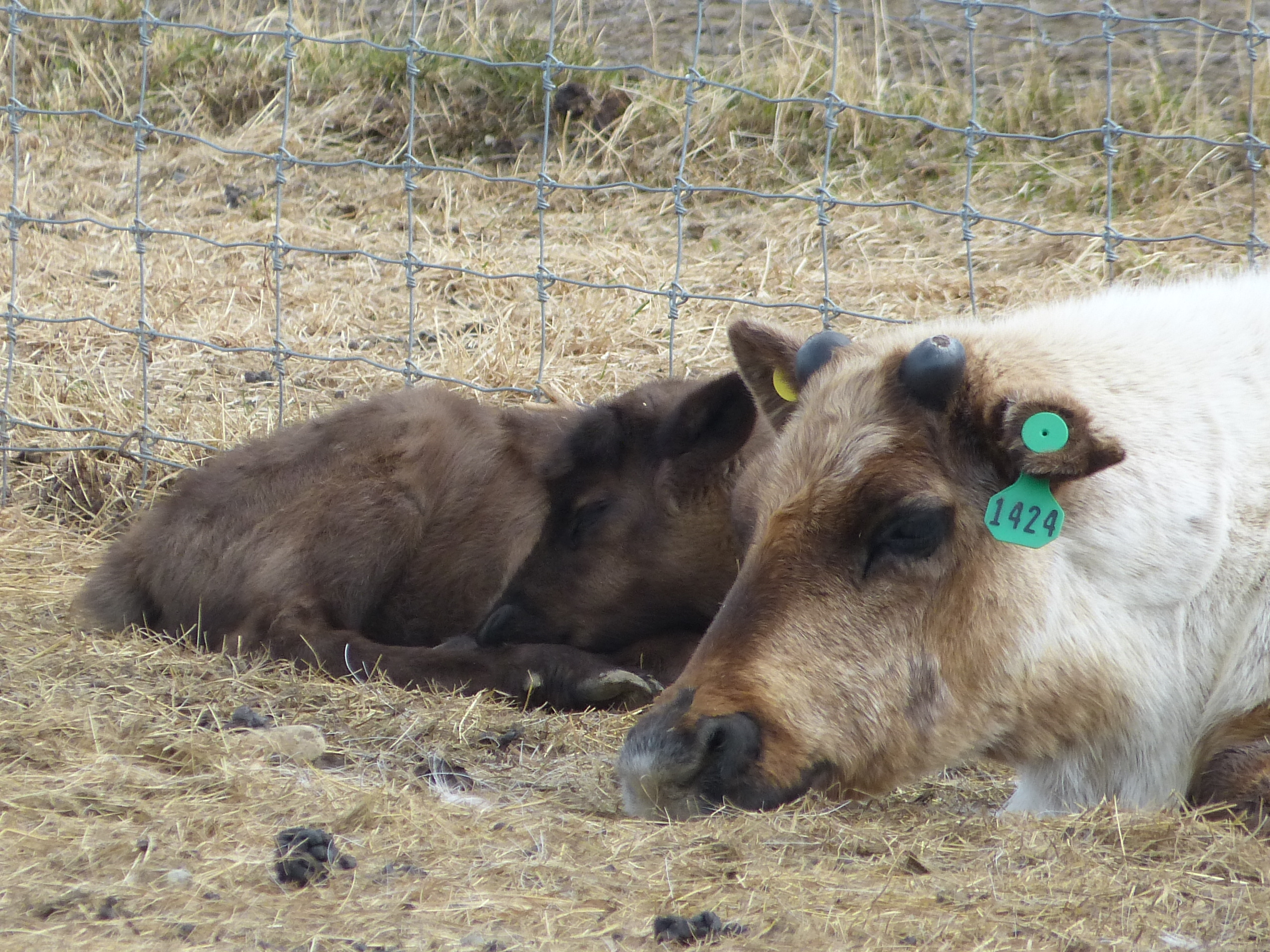 A mother and calf reindeer at the University of Alaska, Fairbanks.