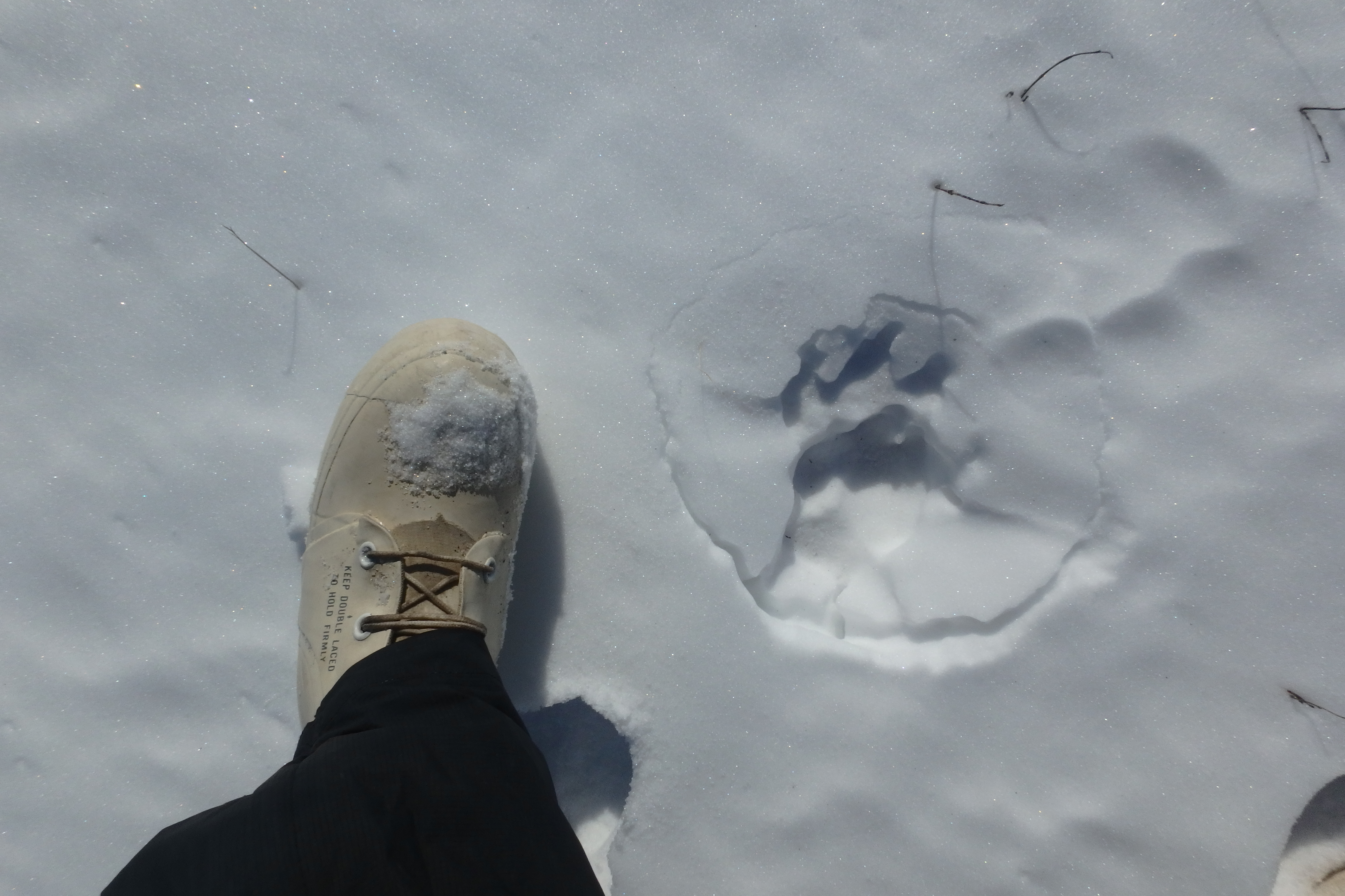 Jennifer Baldacci stands next to wolf tracks at East Atigun field site.