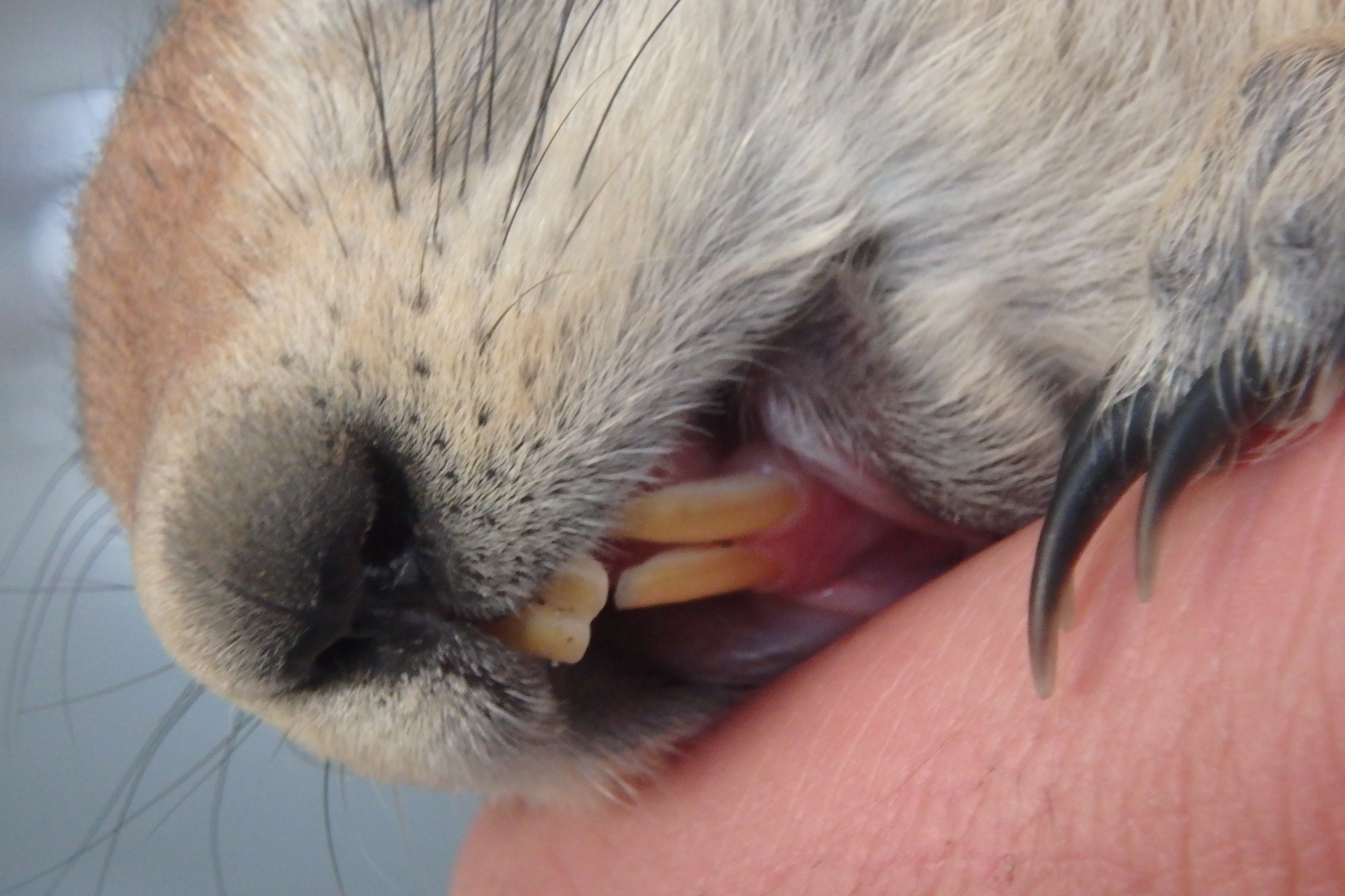 A look at the teeth in an anesthetized Arctic ground squirrel. Winter lab, Toolik Field Station, Alaska.