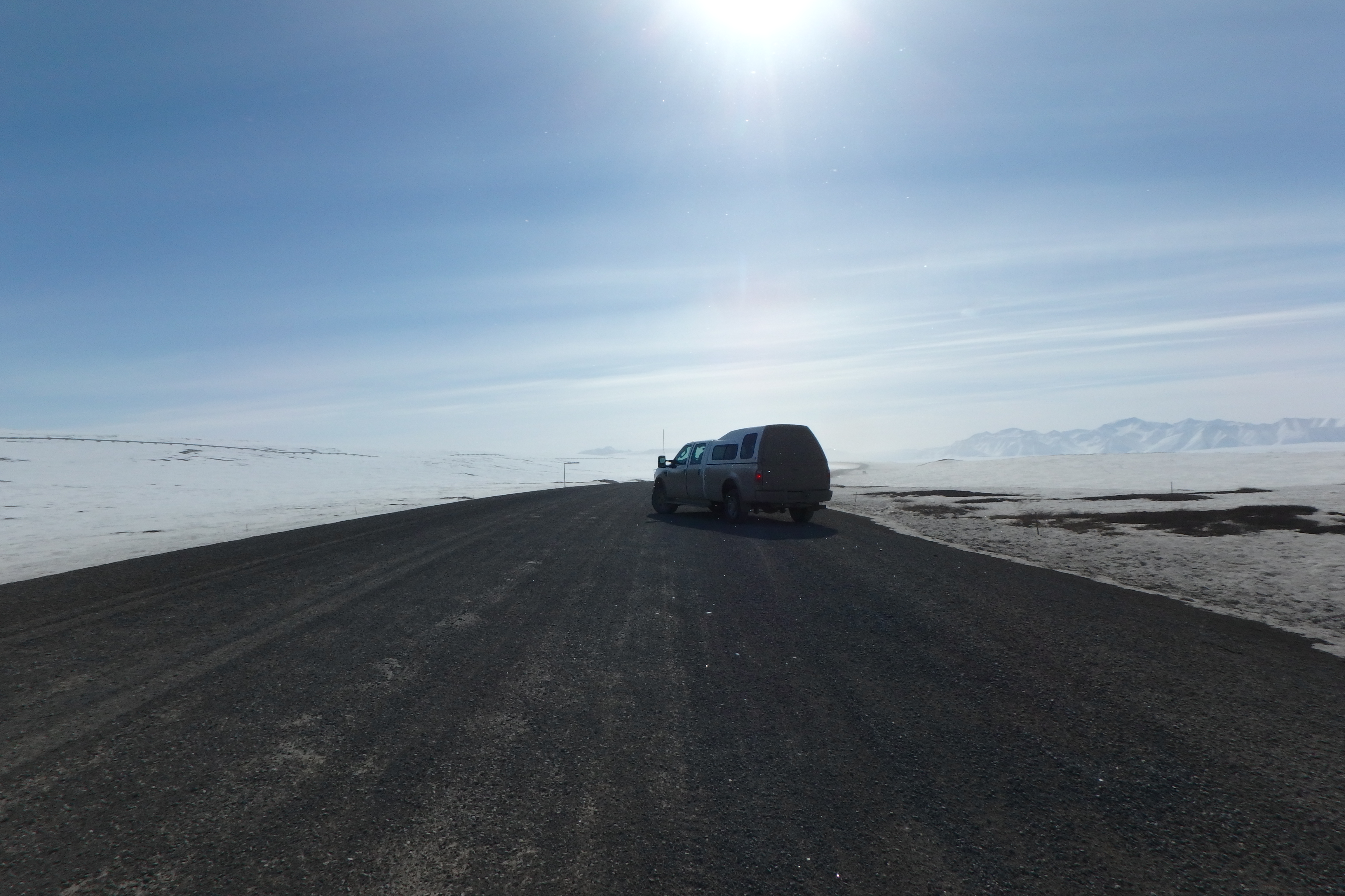 The team's stalled field truck on the Dalton Highway near Toolik Field Station, Alaska.