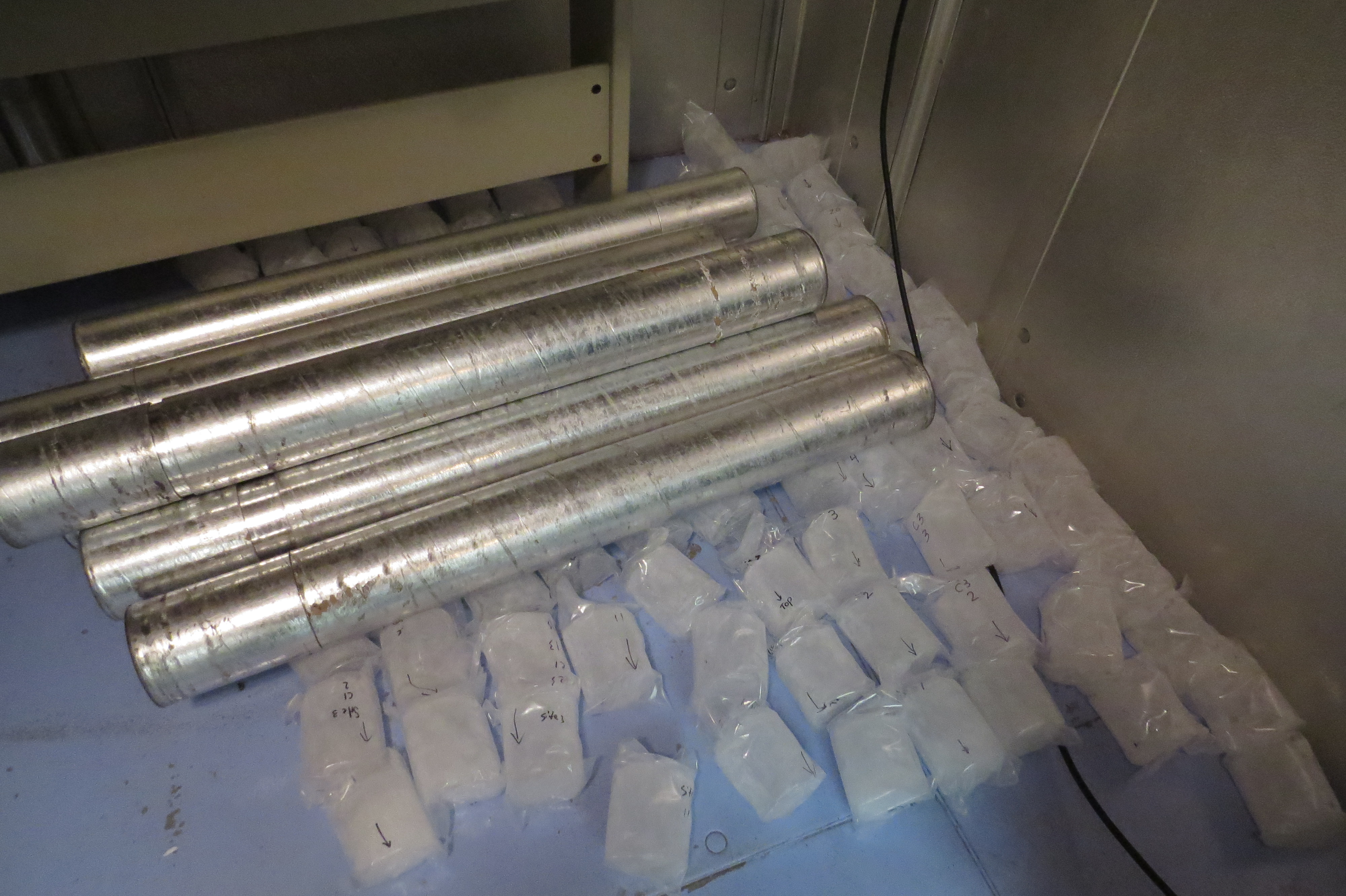 The cold room with ice cores and tubes. The cold room is kept at -21˚C. McMurdo Station, Antarctica.